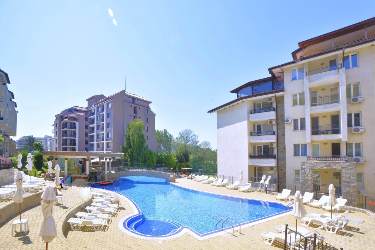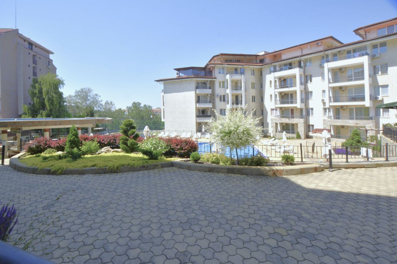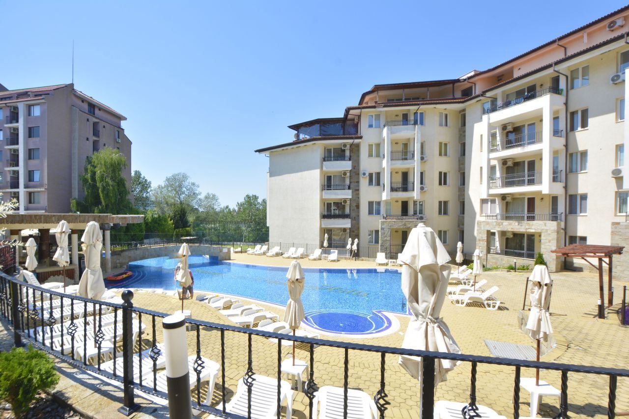 Zum Verkauf steht eine gemütliche Zwei-Zimmer-Wohnung im Erdgeschoss eines gepflegten Wohnkomplexes in einer bevorzugten Lage des Ferienortes Sonnenstrand. Die Gesamtfläche beträgt 57 m² und bietet ein komfortables und praktisches Wohnumfeld, das sich sowohl für den Urlaub als auch für den dauerhaften Aufenthalt eignet.