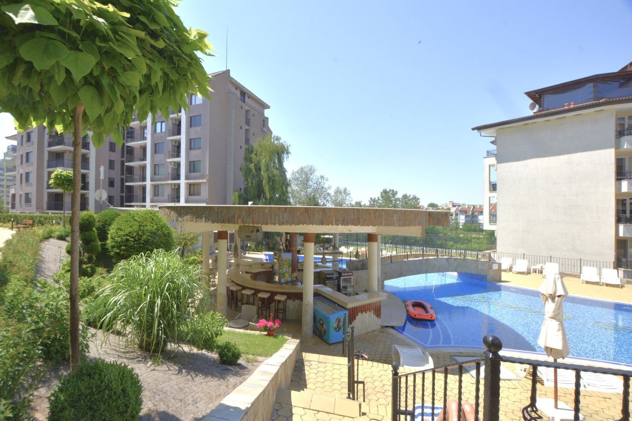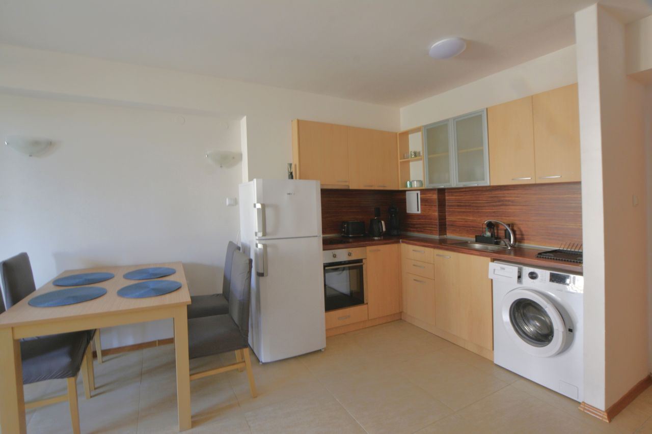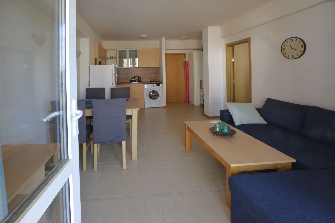 Zum Verkauf steht eine gemütliche Zwei-Zimmer-Wohnung im Erdgeschoss eines gepflegten Wohnkomplexes in einer bevorzugten Lage des Ferienortes Sonnenstrand. Die Gesamtfläche beträgt 57 m² und bietet ein komfortables und praktisches Wohnumfeld, das sich sowohl für den Urlaub als auch für den dauerhaften Aufenthalt eignet.