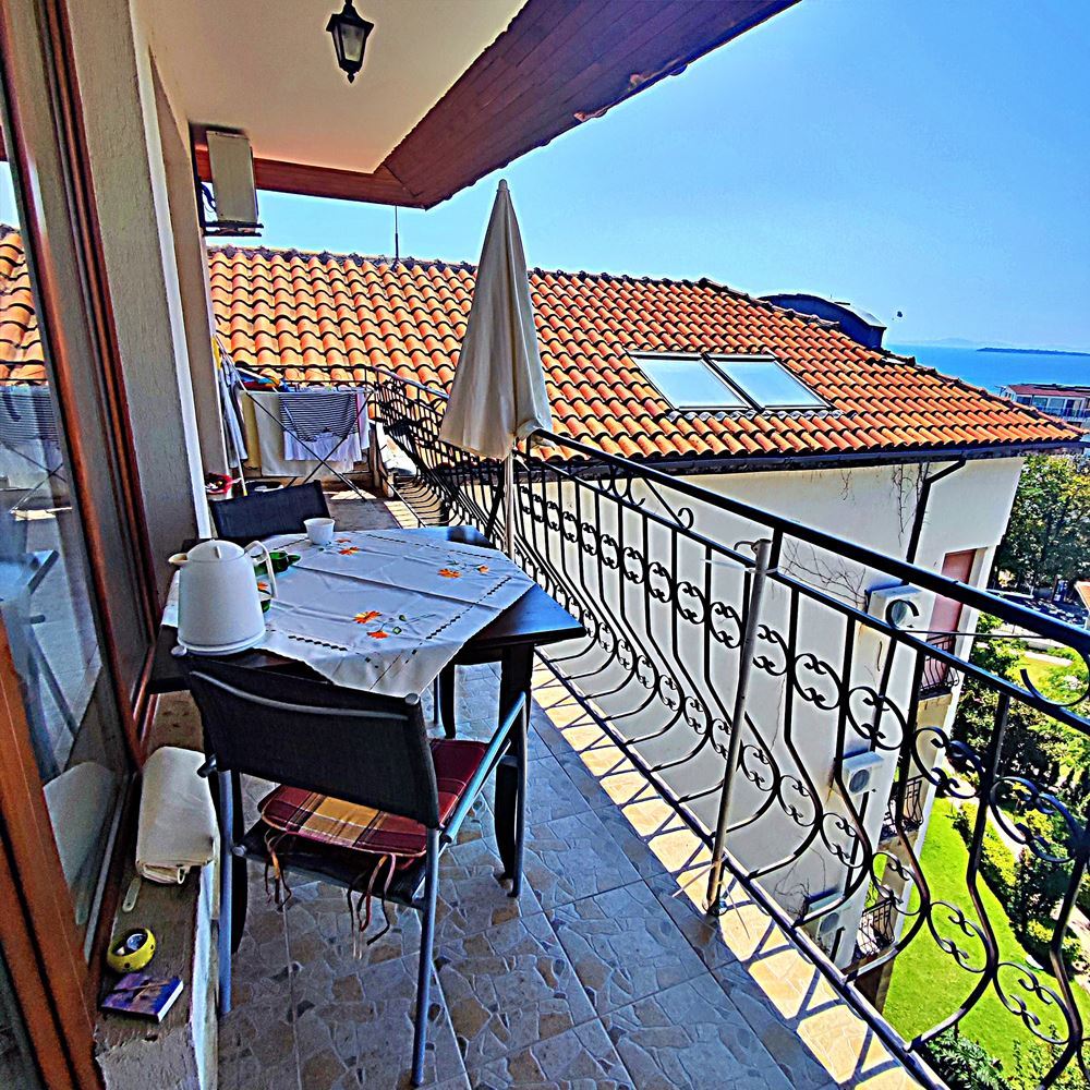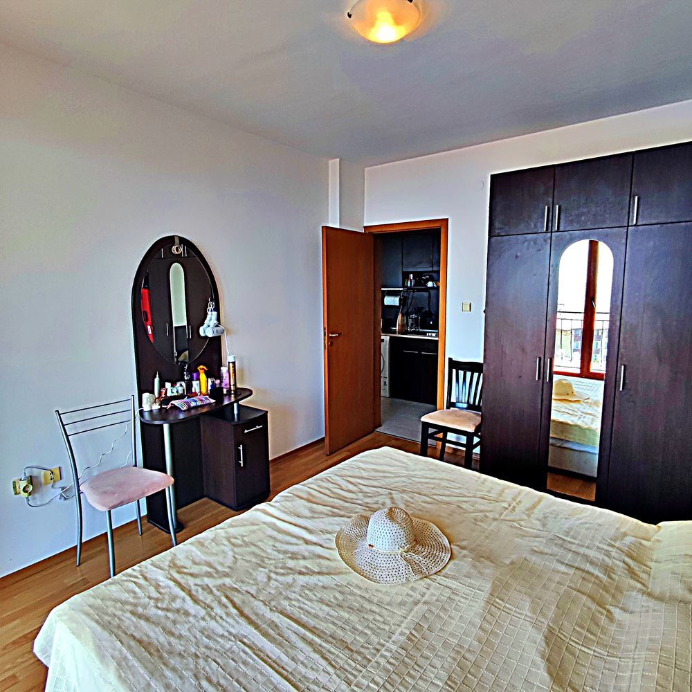 Dieses Apartment mit einem Schlafzimmer in einem angesagten Komplex in Sveti Vlas mit Blick auf das Meer und den Pool ist ein großartiges Angebot für alle, die eine komfortable Unterkunft in diesem Ferienort suchen. Der Komplex befindet sich in einem malerischen Teil von Sveti Vlas und ist nur wenige Gehminuten vom Meer entfernt. In der Nähe der Anlage gibt es viele Annehmlichkeiten wie Supermärkte, Yachthafen, Clubs, Cafés, Restaurants und Bars. Die Lage ist ideal für Ruhe und Entspannung. Die Anlage bietet verschiedene Annehmlichkeiten für die Bewohner, darunter ein Restaurant, eine Bar, einen Außenpool mit Sonnenliegen, einen Kinderspielplatz, einen Parkplatz und einen Sicherheitsdienst. Dies schafft eine Atmosphäre von Luxus und Komfort. Die Wohnung hat eine Gesamtfläche von 59 m² und besteht aus einem Wohnzimmer mit Kochnische, einem Schlafzimmer, einem Badezimmer und einem Balkon. Die Wohnung wird komplett möbliert und ausgestattet verkauft, so dass sie sofort einzugsbereit ist. Dadurch sind keine zusätzlichen Investitionen erforderlich. Der schöne Blick auf das Meer und den Pool trägt zum Charme und zur entspannten Atmosphäre der Wohnung bei.
