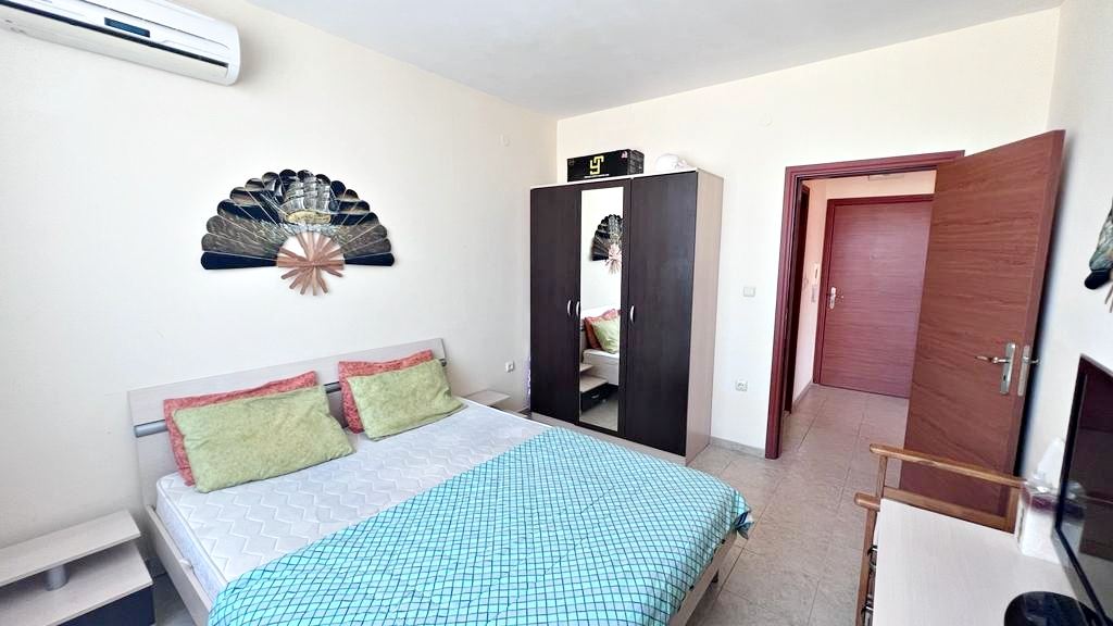 2-Zimmer-Wohnung in einem Komplex ca. 100 m. vom Strand in Sunny Beach entfernt. Die Wohnung mit einer Fläche von 45 qm befindet sich auf der 6. Etage. Diese besteht aus Flur, Wohnzimmer mit Kochnische, Schlafzimmer, Bad mit WC und einem Balkon mit Blick auf den Pool. Alle Möbel und Geräte sind in gutem Zustand und im Preis inbegriffen. Einrichtungen in der Anlage: Außenpool für Erwachsene und Kinder, Restaurant, Cafe, Geschäfte, Sicherheit, Grünanlagen, Parkplatz.