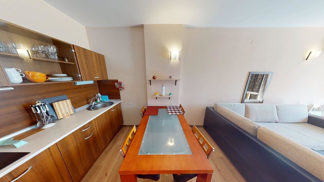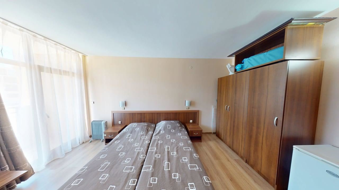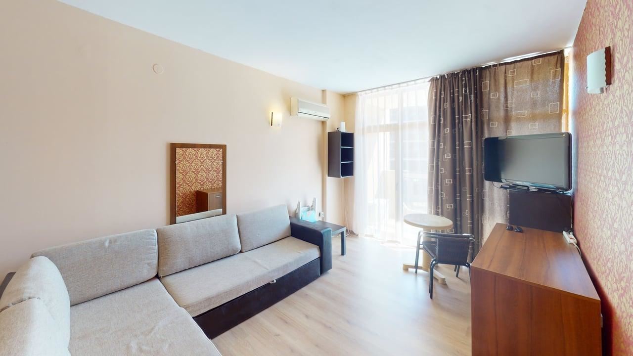 Wir präsentieren Ihnen diese stilvolle Oase der Ruhe und Erholung, nur wenige Schritte vom Meeresufer im beliebten Badeort Sonnenstrand entfernt. Die Zweizimmerwohnung mit einer Fläche von 67 Quadratmetern befindet sich im dritten Stock eines modernen, gepflegten Komplexes. Bereits beim Betreten empfängt Sie ein einladender Flur, der in ein großzügiges Wohnzimmer übergeht – geschmackvoll gestaltet mit viel Liebe zum Detail. Die Einrichtung besteht aus hochwertigen Möbeln, die Eleganz und Komfort miteinander vereinen. Das Schlafzimmer ist ruhig und gemütlich, während der Balkon mit Blick auf den Pool einen idealen Ort zur Entspannung bietet. Das Badezimmer ist komplett ausgestattet und entspricht modernen Standards.