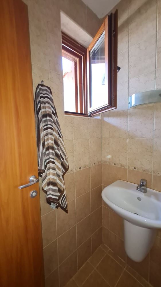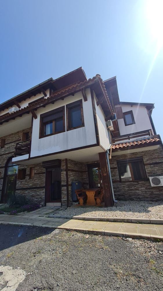 Die Wohnanlage gehört zu den schönsten in der Gegend und verbindet traditionelle bulgarische Architektur mit modernen Innenräumen. Den Bewohnern stehen zwei Swimmingpools, ein Kinderspielplatz, ein bequemer Parkplatz, eine Bushaltestelle und ein Radweg zur Verfügung. Die Nähe zum Lidl-Supermarkt macht diese Immobilie noch attraktiver. Die Anlage wird im Rahmen einer Eigentümergemeinschaft verwaltet, was eine gepflegte und ruhige Umgebung garantiert.