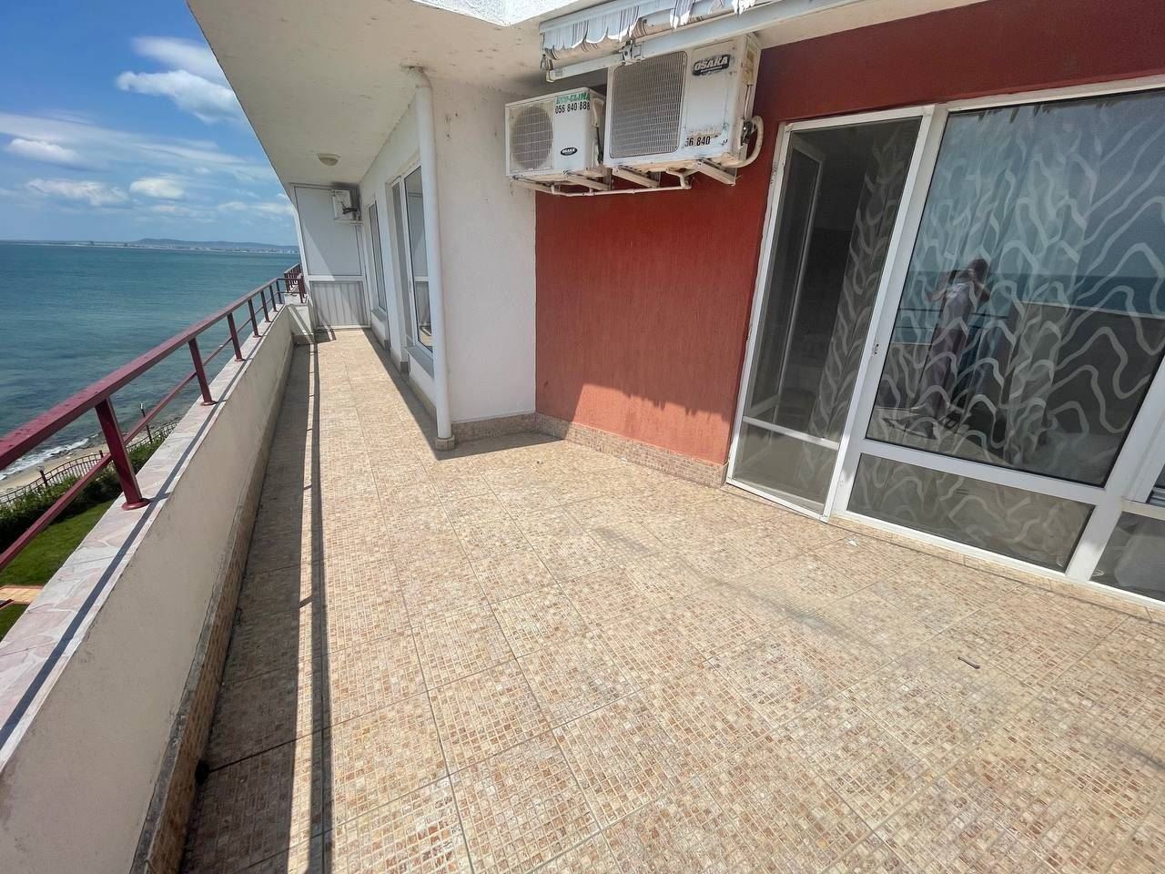 Wir bieten zum Verkauf eine geräumige Wohnung mit zwei Schlafzimmern und großem Balkon mit direktem Meerblick in einer ganzjährig geöffneten Anlage direkt am Strand in Elenite an.