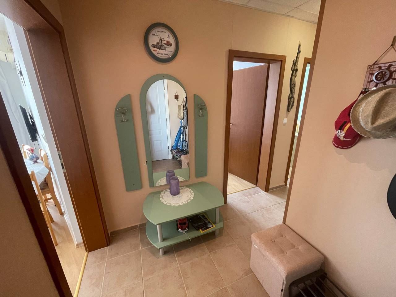 Die Gesamtfläche der Wohnung beträgt 86 qm und diese befindet sich im 5. OG, welches bequem per Aufzug zu erreichen ist. Die Wohnung besteht aus einem Flur, einem Wohnzimmer mit Küchenzeile, zwei Schlafzimmern, einem Bad mit WC und einem großen Balkon mit direktem Blick auf das Meer. Die Wohnung wird mit allen Möbeln und Geräten verkauft, welche im Preis inbegriffen sind.