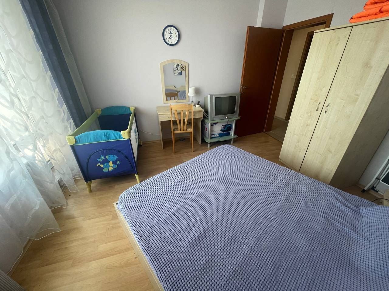 Die Gesamtfläche der Wohnung beträgt 86 qm und diese befindet sich im 5. OG, welches bequem per Aufzug zu erreichen ist. Die Wohnung besteht aus einem Flur, einem Wohnzimmer mit Küchenzeile, zwei Schlafzimmern, einem Bad mit WC und einem großen Balkon mit direktem Blick auf das Meer. Die Wohnung wird mit allen Möbeln und Geräten verkauft, welche im Preis inbegriffen sind.