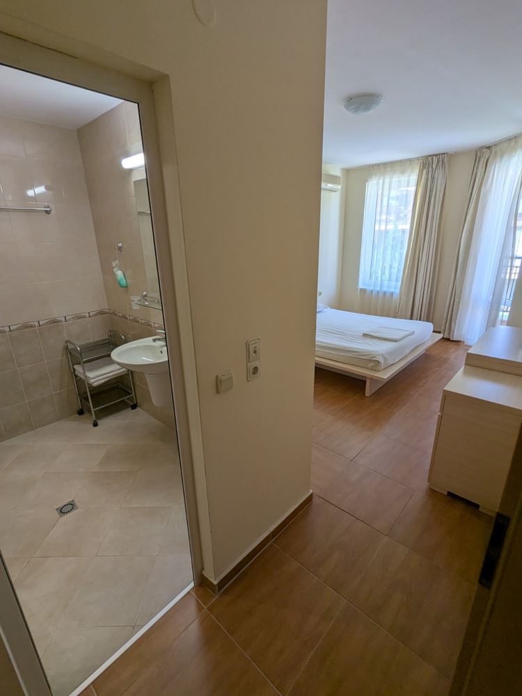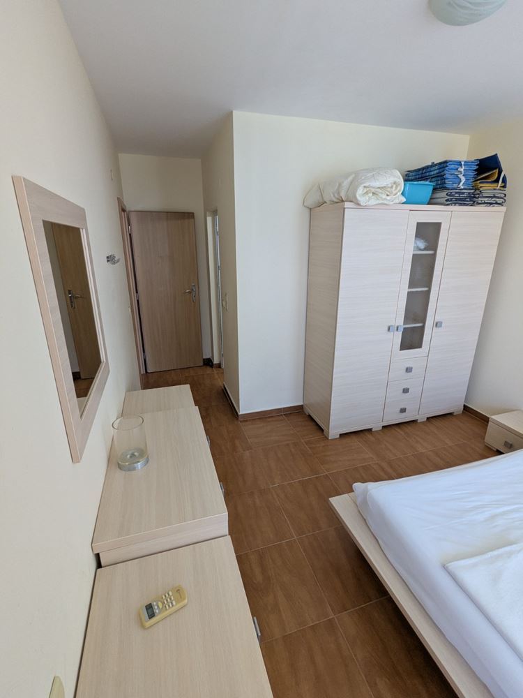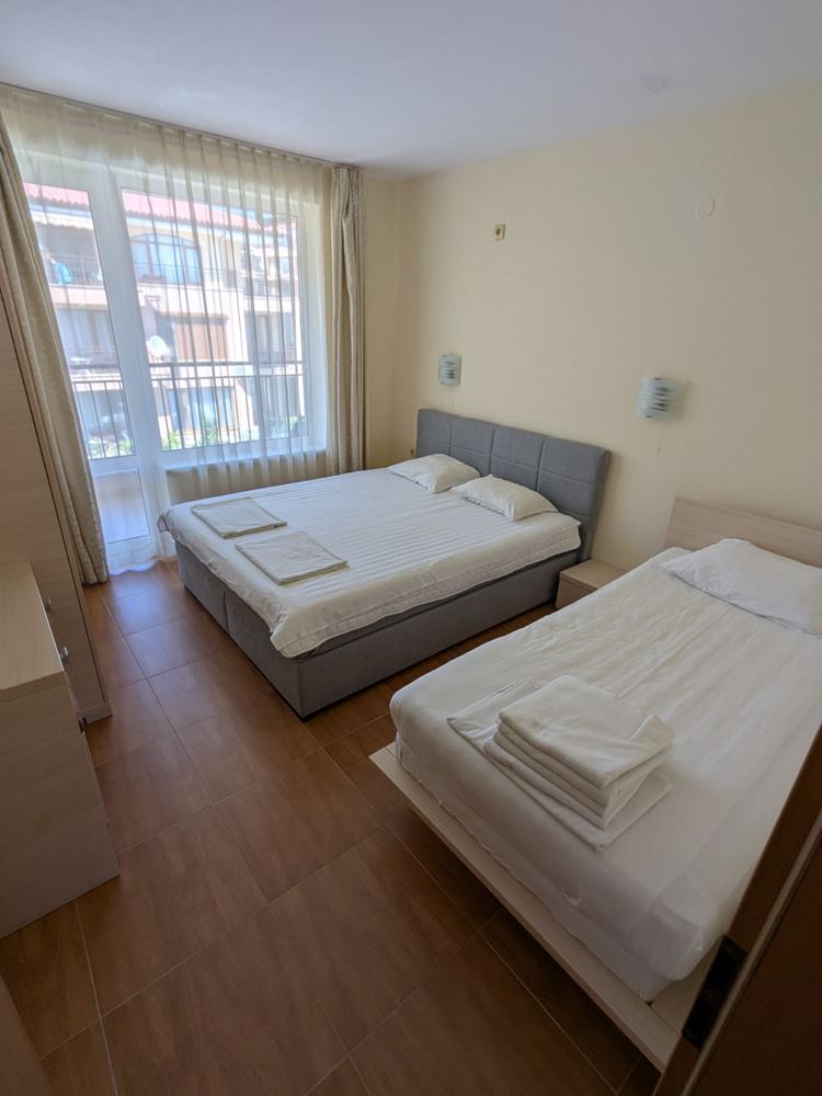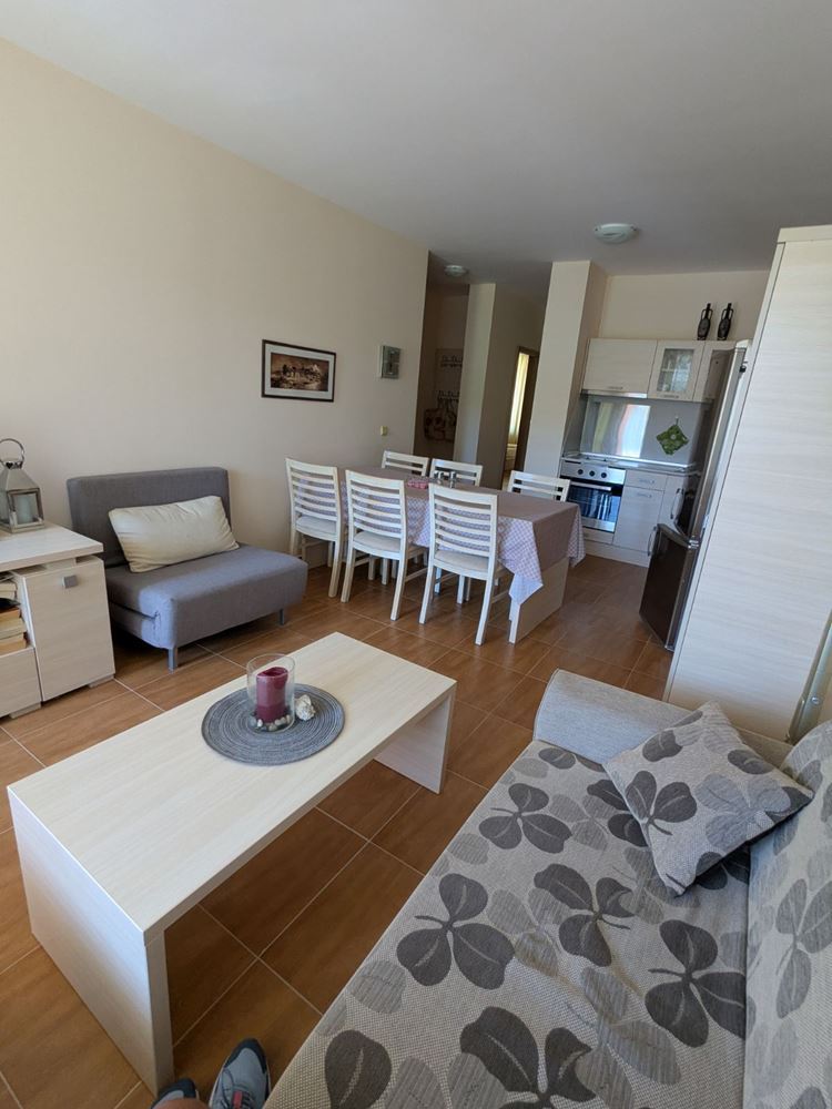 Die komplett möblierte Dreizimmerwohnung mit Blick auf den Pool befindet sich in einer Wohnanlage in Sveti Vlas, in einer schönen und ruhigen Gegend, nur 200 Meter vom Meer entfernt. Die Anlage zeichnet sich durch ihre moderne Architektur, eine ausgezeichnete Infrastruktur, gute Verkehrsanbindungen und nahegelegene Bushaltestellen aus und ist ideal für einen dauerhaften Wohnsitz geeignet.