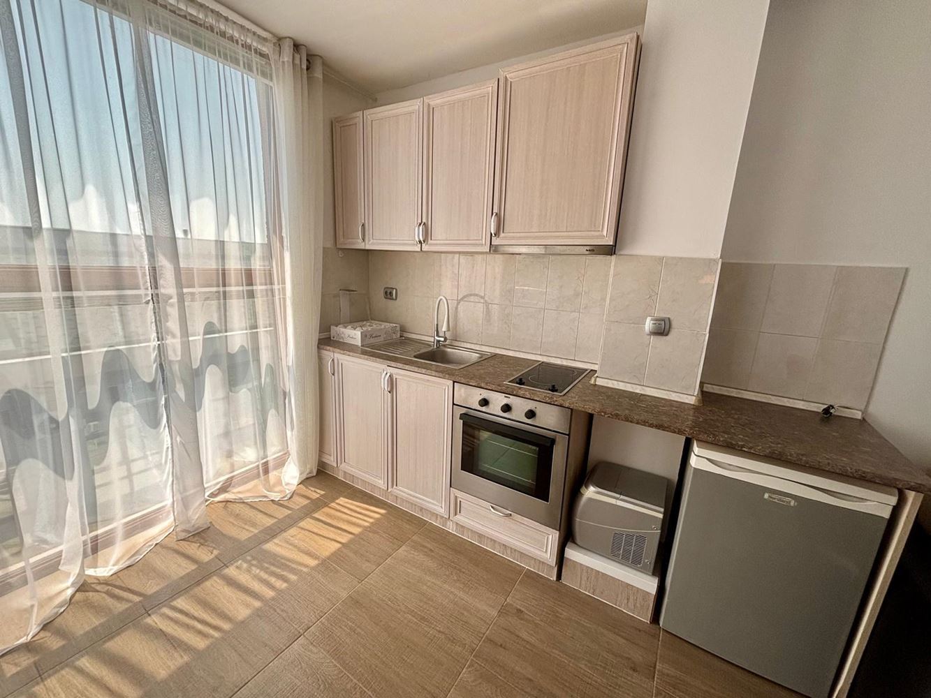 Wir präsentieren eine geräumige und helle Dreizimmerwohnung mit zwei Schlafzimmern, gelegen in einem gepflegten Komplex in der Stadt Sveti Vlas, nur 300 Meter vom goldenen Strand und dem Meer entfernt. Die Immobilie hat eine Gesamtfläche von 104 m², befindet sich im vierten Stock und wird vollständig möbliert und ausgestattet verkauft – bezugsfertig oder zur Vermietung. Die Aufteilung ist funktional und praktisch für den täglichen Komfort: Eingangsbereich, geräumiges Wohnzimmer mit Küchenzeile und Essbereich, zwei separate Schlafzimmer, Badezimmer mit Toilette, Hauswirtschaftsraum und zwei Terrassen. Die Wohnung ist gut beleuchtet, und von den Terrassen bietet sich ein teilweiser Meerblick – ein angenehmer Akzent für Morgenkaffee oder Abendentspannung.