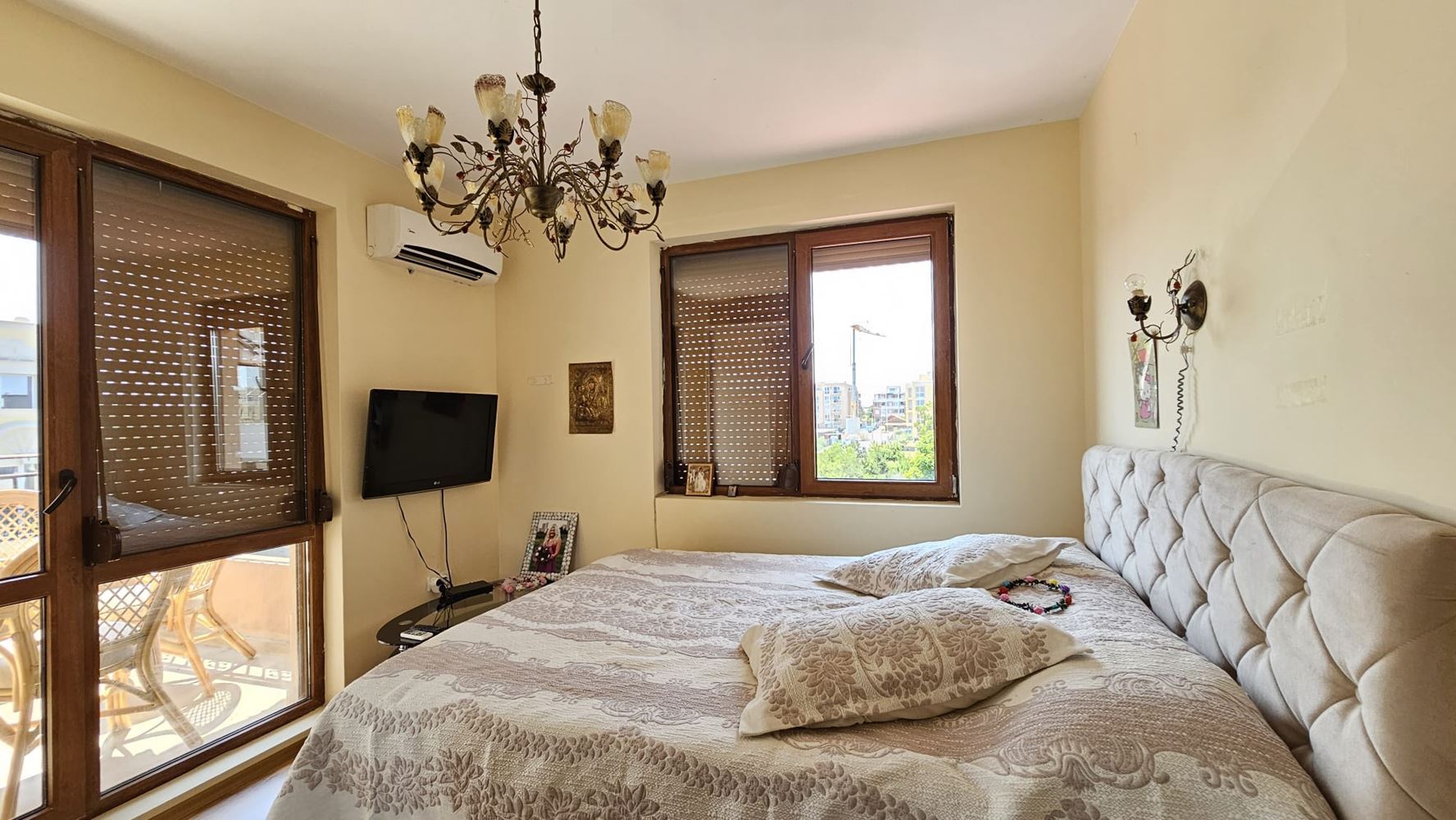 Großartige Dreizimmerwohnung im Herzen des schönen Ortes Ravda. Diese elegante Immobilie bietet die perfekte Kombination aus Komfort und Stil, verbunden mit einem wunderbaren Ausblick. Mit einer Gesamtfläche von 81 m² verfügt die Wohnung über eine großzügige und funktionale Raumaufteilung. Sie umfasst drei Zimmer: zwei gemütliche Schlafzimmer, ein modernes Wohnzimmer mit voll ausgestatteter Küche sowie zwei Bäder mit WC. Für das echte Vergnügen des Lebens am Meer gehören außerdem zwei angenehme Terrassen dazu, auf denen man die Aussicht und die frische Meeresbrise genießen kann.