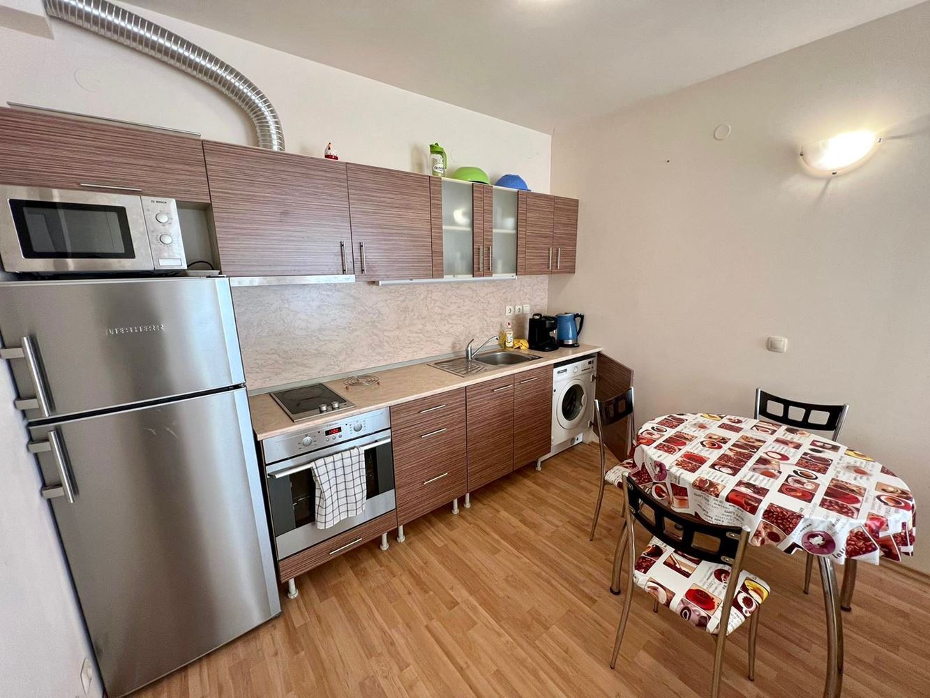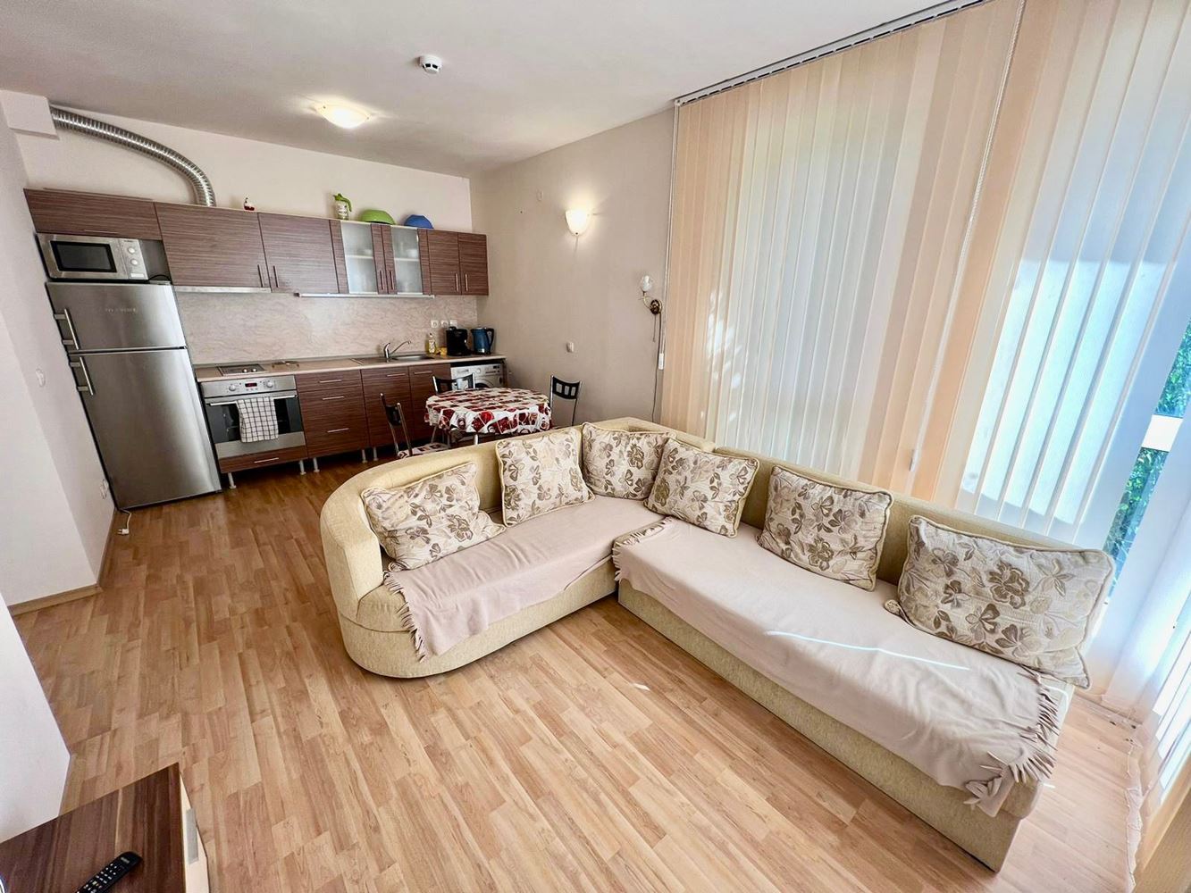 Zum Verkauf steht eine schöne Wohnung in einem wunderschönen Komplex in Sonnenstrand, welcher eine Reihe von Vorteilen für einen komfortablen Aufenthalt und Erholung bietet. Der Komplex befindet sich im südwestlichen Teil von Sunny Beach und bietet eine Vielzahl von Annehmlichkeiten wie einen Außenpool mit Entspannungsbereich, einen Supermarkt, eine Lobbybar und eine Snackbar. Dies sorgt für Komfort und Abwechslung im Alltag. Das Gebiet, in dem sich der Komplex befindet, ist landschaftlich gestaltet und verfügt über eine gut ausgebaute Infrastruktur, so dass es sich gut für einen dauerhaften Aufenthalt eignet. Die Wohnung ist 55 m² groß und verfügt über ein geräumiges Wohnzimmer mit Küche, ein Schlafzimmer, ein Bad und einen Balkon. Die Wohnung wird mit den Möbeln und der Ausstattung verkauft und ist somit sofort bezugsfertig.
