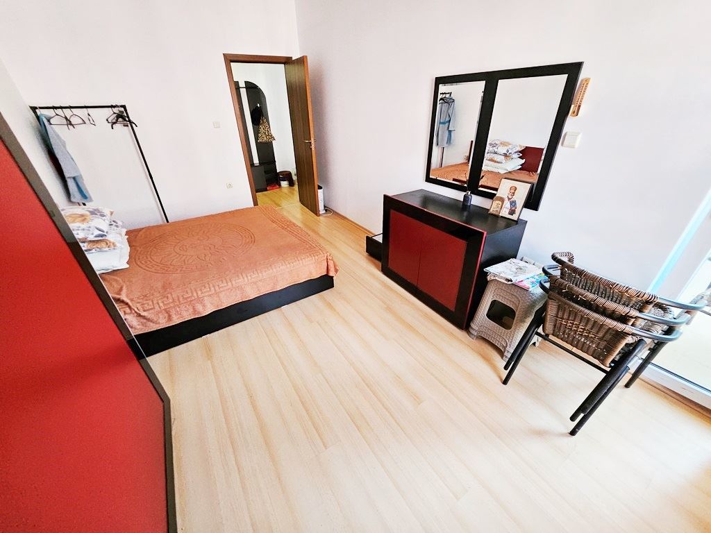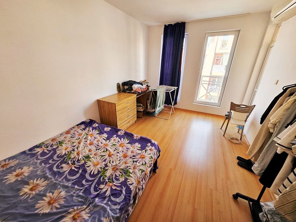 Wir präsentieren Ihnen eine Dreizimmerwohnung in einem Komplex in der Region Sonnenstrand. Die Wohnung befindet sich im dritten Stock und bietet mit einer Gesamtfläche von 73 m² den idealen Wohnraum sowohl für die private Nutzung als auch als Investition. Die Wohnung umfasst drei Zimmer, darunter zwei gemütliche Schlafzimmer, perfekt für erholsame Ruhezeiten. Das helle Wohnzimmer ist mit komfortablen Möbeln eingerichtet und bietet direkten Zugang zum Balkon, von dem aus Sie die schöne Aussicht und die frische Meeresluft genießen können. Das Badezimmer ist praktisch gestaltet und mit modernen Annehmlichkeiten ausgestattet.