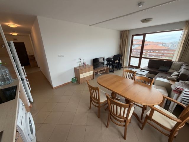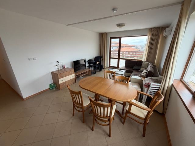 Wir bieten Ihnen ein außergewöhnlich attraktives Apartment mit zwei Schlafzimmern mit einer Fläche von 96.84 m² und einer riesigen Terrasse, gelegen im zweiten Stock eines vierstöckigen Gebäudes, am Rand von Sonnenstrand, in der Nähe des Hypermarktes Lidl. Die Immobilie vereint Großzügigkeit, Funktionalität und eine ruhige Umgebung, was sie sowohl für die Eigennutzung als auch als Investition zu einer ausgezeichneten Wahl macht. Das Apartment ist vollständig möbliert und bezugsfertig, wodurch Sie Zeit und zusätzliche Kosten sparen. Die Aufteilung bietet Komfort und Praktikabilität – ein heller Wohnbereich mit Platz für Entspannung und Essen, zwei separate Schlafzimmer mit direktem Zugang zur beeindruckenden Terrasse, ein Badezimmer mit Toilette. Der Außenbereich ist das wahre Juwel dieser Immobilie und bietet die Möglichkeit, eine Entspannungsecke, einen Grillbereich, einen Außenessbereich oder sogar einen Whirlpool einzurichten. Dies ist ein Ort, der jeden Sommertag in ein Vergnügen verwandelt.
