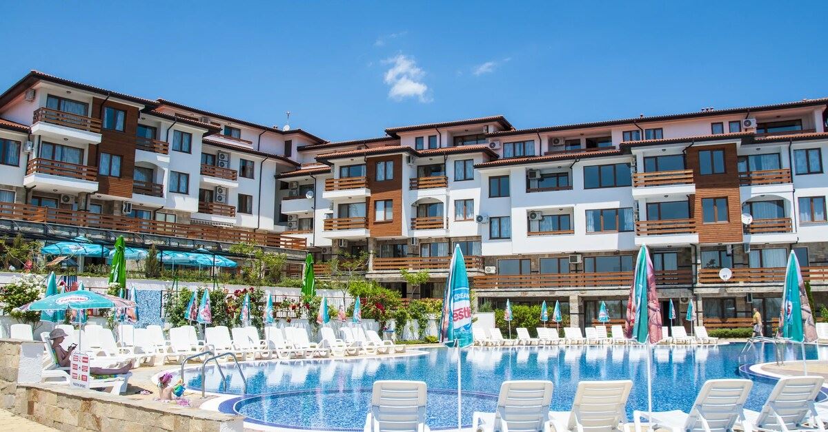 Die Anlage beeindruckt mit ihrer traditionellen bulgarischen Architektur, die ein Gefühl von Gemütlichkeit, Stil und Harmonie mit der Umgebung schafft. Den Eigentümern stehen ein Restaurant mit reichhaltigem Menü, ein Außenpool, ein Kinderbereich, Entspannungs- und Grillzonen – alles Notwendige für einen komfortablen Aufenthalt und полноцен Erholung – zur Verfügung. Rund-um-die-Uhr-Sicherheit und bequeme Parkmöglichkeiten gewährleisten Ruhe und Sicherheit. Die Lage ist strategisch – die Immobilie befindet sich in einem ruhigeren Teil der Gegend, jedoch mit leichtem Zugang zum Zentrum von Sonnenstrand, zum Strand und zu allen Attraktionen des Resorts. Die Nähe zu Lidl und zur übrigen städtischen Infrastruktur macht den Alltag bequem und praktisch.