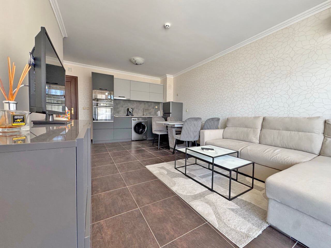 Wir präsentieren eine Ein-Zimmer-Wohnung mit einer Gesamtfläche von 67 m², gelegen auf einem Stockwerk mit atemberaubendem Meerblick und einer Kombination aus Stil, Gemütlichkeit und modernen Annehmlichkeiten. Die Immobilie ist Teil eines modernen Komplexes, der mit viel Liebe zum Detail und hochwertigen Materialien gestaltet wurde, und bietet Wohnkomfort auf hohem Niveau.