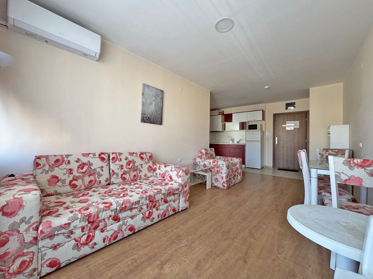 Wir präsentieren Ihnen eine außergewöhnliche Immobilie direkt am Meer im prestigeträchtigen Kurort Sveti Vlas – eine Ein-Zimmer-Wohnung mit einer Fläche von 71 m², gelegen im vierten Stock eines modernen und sehr gepflegten Komplexes. Die Wohnung ist vollständig möbliert und bis ins Detail ausgestattet und steht zur sofortigen Nutzung bereit, was sie sowohl für den Eigenbedarf als auch als Investition mit hohem Potenzial ideal macht. Die Wohnung beeindruckt durch ihre Funktionalität, Geräumigkeit und Helligkeit. Von der Terrasse bietet sich ein schöner Blick auf die Berge und die Stadt, der ein Gefühl von Weite und Harmonie vermittelt. Die Kombination aus Meerlage und Panoramablick auf die Umgebung macht diese Immobilie wirklich besonders und begehrt.