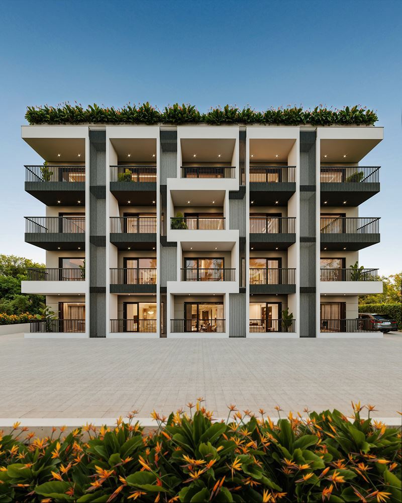 Das Gebäude ist mit einer begrenzten Anzahl von Wohnungen konzipiert, was Ruhe und Gemütlichkeit für die zukünftigen Eigentümer gewährleistet. Es verfügt über einen Aufzug, hochwertig ausgeführte Gemeinschaftsbereiche und einen hohen Baustandard.