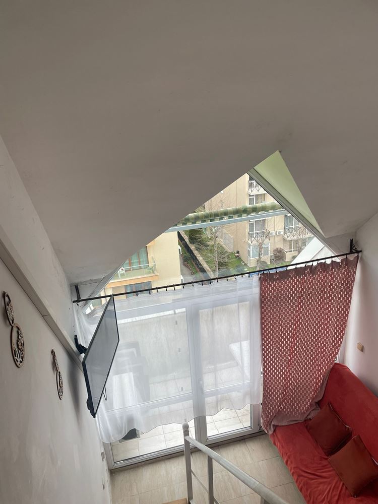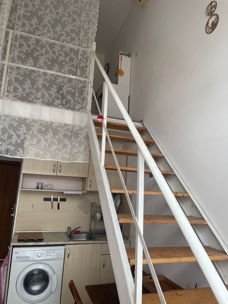 Die erste Ebene verfügt über ein helles und geräumiges Wohnzimmer mit Küche, Badezimmer und Terrasse, die einen angenehmen Raum für Entspannung und gesellige Momente bietet. Von hier aus können Sie die frische Luft und die Ruhe des Komplexes genießen. Die zweite Ebene ist für das Schlafzimmer vorgesehen und bietet Gemütlichkeit und ideale Bedingungen für erholsamen Schlaf. Die Duplex-Aufteilung ist sorgfältig gestaltet, um maximalen Komfort auf kleiner Fläche zu gewährleisten.