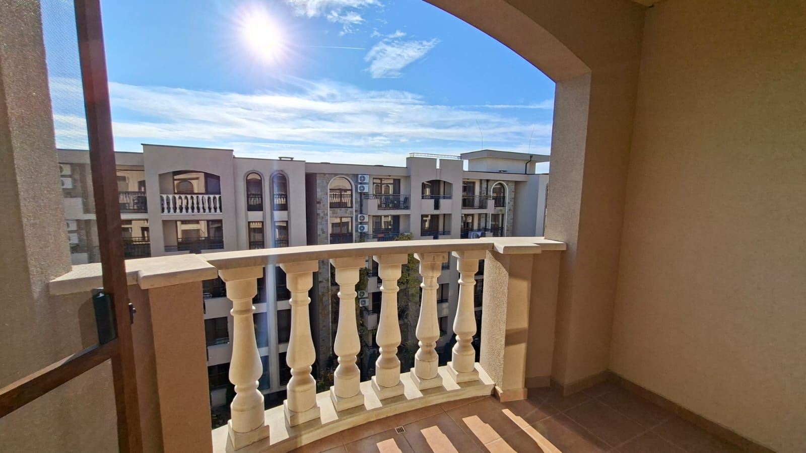 Wir präsentieren Ihnen ein geräumiges und stilvoll möbliertes Studio mit einer Fläche von 35,53 m², gelegen im fünften und letzten Stock eines modernen Komplexes im attraktiven mediterranen Stil im Ferienort Sonnenstrand. Die Immobilie vereint Komfort, Funktionalität und ausgezeichneten Investitionswert und bietet eine ideale Möglichkeit sowohl zur Eigennutzung als auch zur Vermietung während der aktiven Tourismussaison.