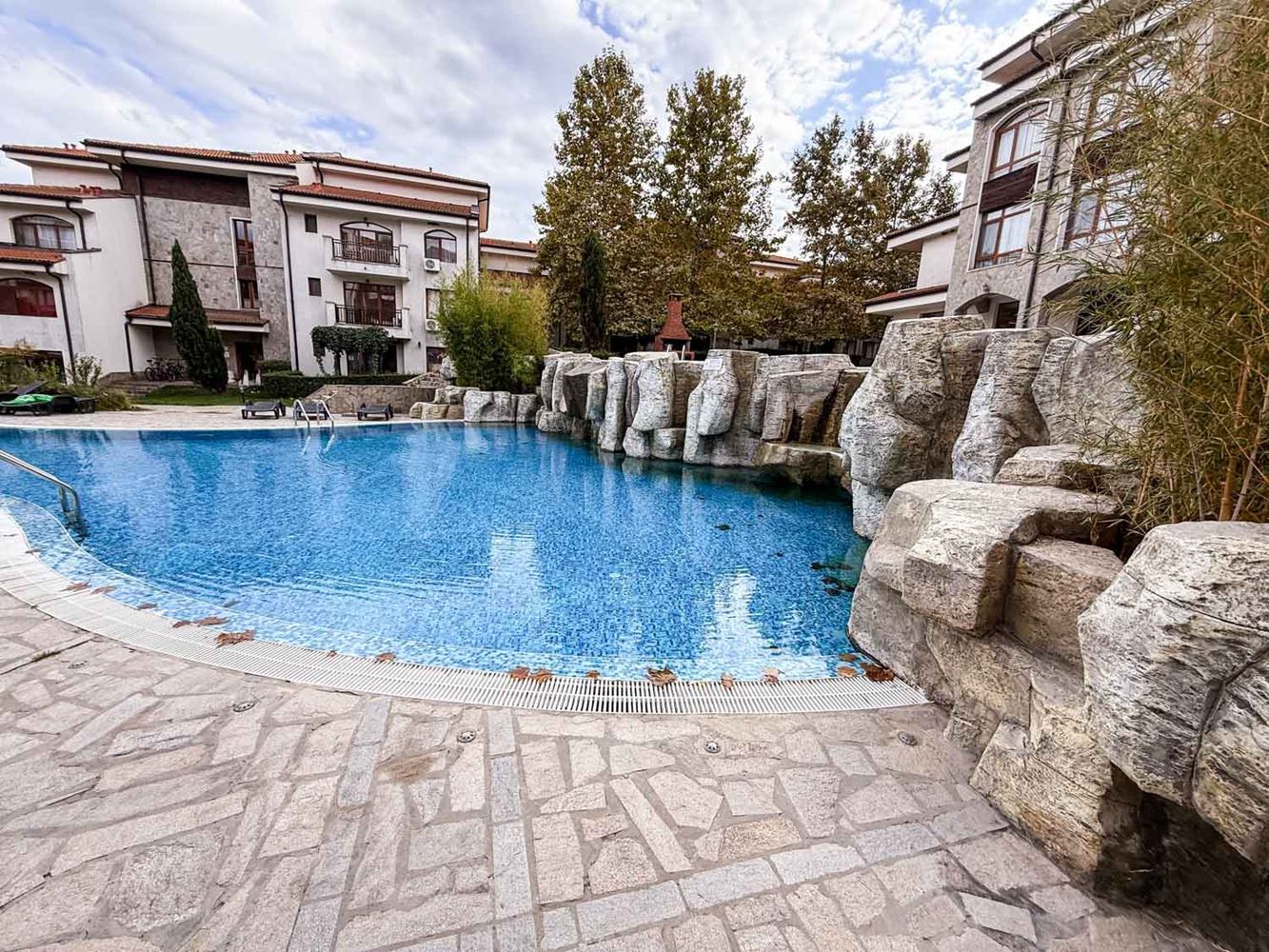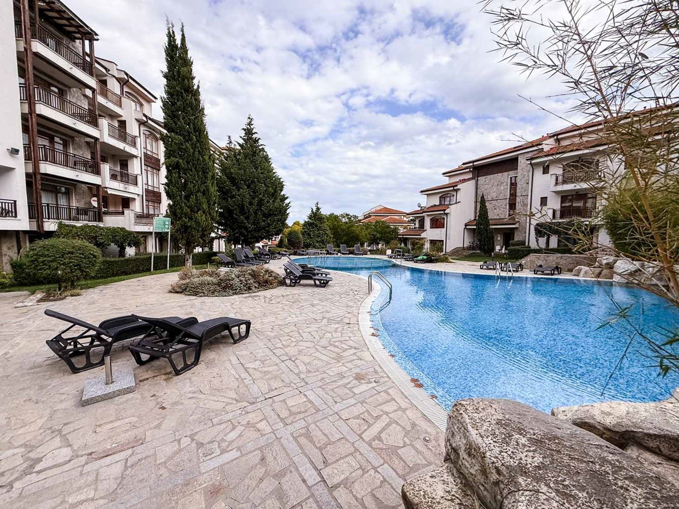 Der Komplex beeindruckt mit exquisiter Architektur, inspiriert von der bulgarischen Wiedergeburts-Tradition – rote Ziegel, Holzelemente und Steinfassaden verleihen Charakter und Gemütlichkeit. Die Bewohner genießen vielfältige Annehmlichkeiten: Sportanlagen, gastronomische Einrichtungen und mehrere Schwimmbäder für Entspannung an warmen Tagen. Der Aufzug sorgt für zusätzlichen Komfort im Alltag. Die Lage verbindet Ruhe und Nähe zur Natur mit bequemer Anbindung an größere Städte und zentrale Punkte an der Schwarzmeerküste. Aheloy bietet eine ruhige Wohnumgebung, während Burgas, Nessebar und Pomorie bequem für Arbeit, Bildung, Gesundheitsversorgung und Unterhaltung erreichbar sind. So erhalten Sie das Beste aus beiden Welten – Privatsphäre ohne Verzicht auf Komfort.