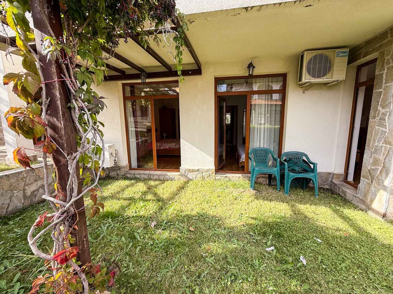 Wir präsentieren Ihnen ein seltenes Angebot: eine Erdgeschoss-Dreizimmerwohnung mit großem Privatgarten und direktem Zugang von allen Räumen in einem prestigeträchtigen Komplex in Aheloy. Die Immobilie verbindet das Gefühl eines Hauses mit den Annehmlichkeiten eines modernen gepflegten Komplexes und eignet sich sowohl als Ferienhaus als auch für das ganzjährige Wohnen. Mit einer Gesamtfläche von 124,66 m² bietet die Wohnung hervorragende Raumaufteilung und Komfort: