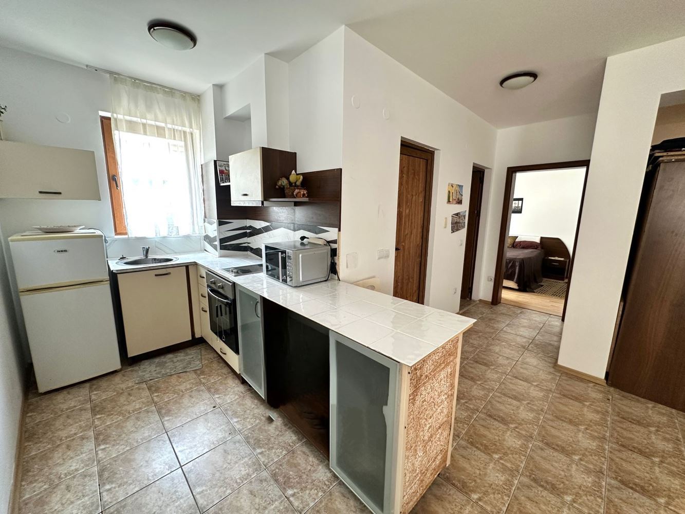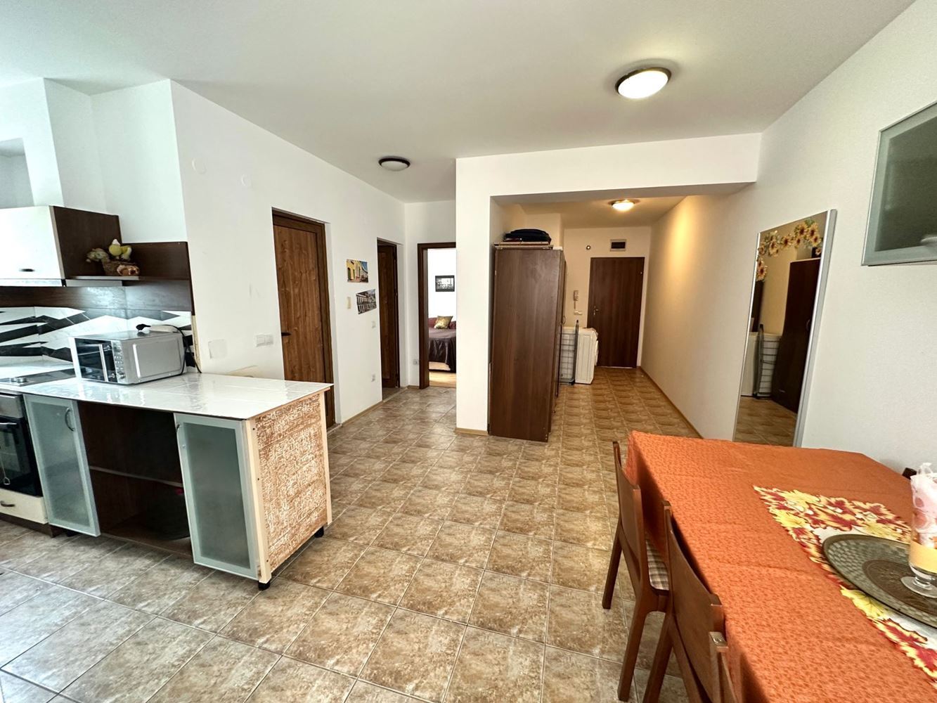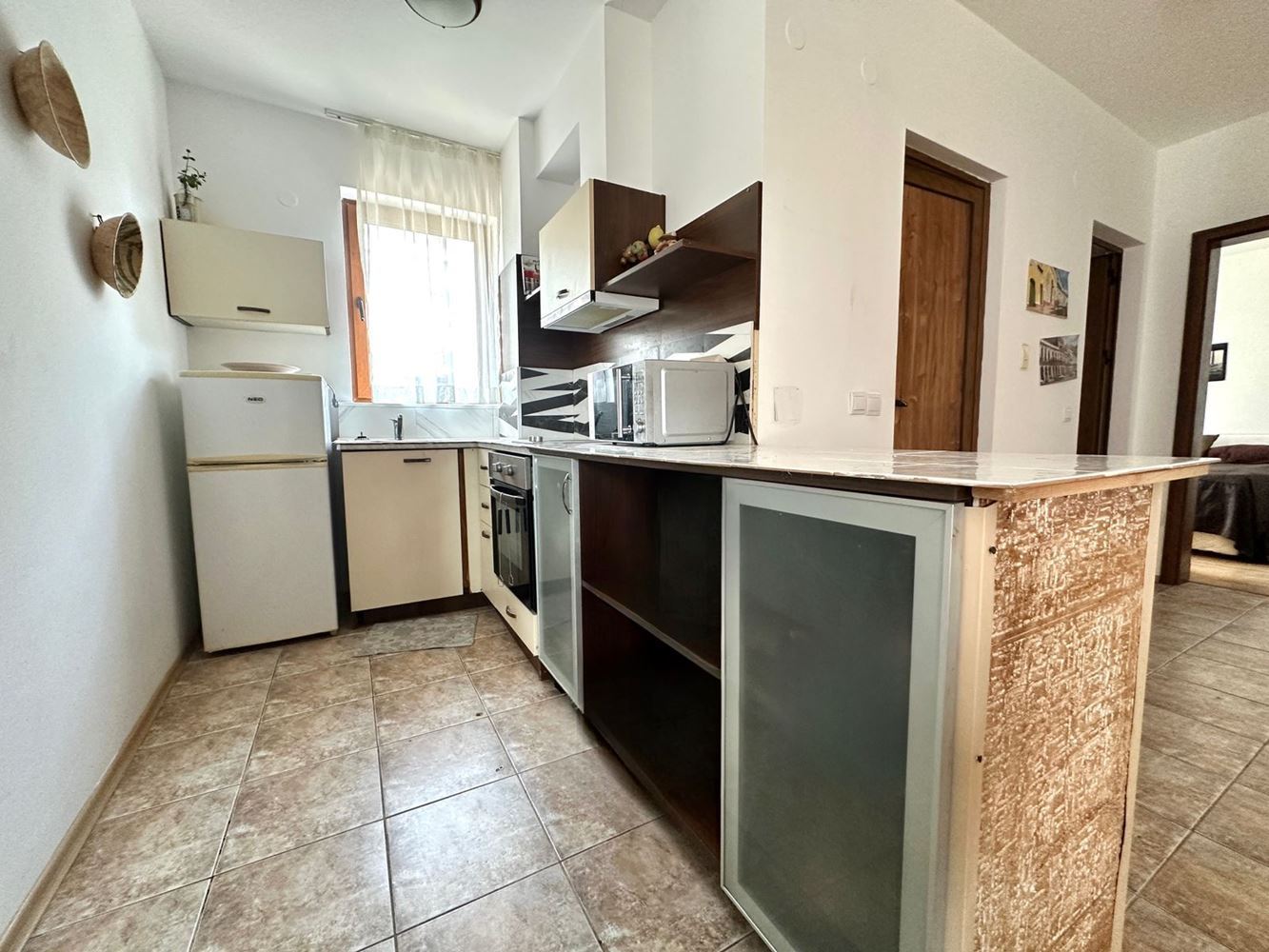 Wir präsentieren Ihnen eine außergewöhnliche Drei-Zimmer-Wohnung mit eleganter Architektur und durchdachtem Grundriss, gelegen in einer modernen Wohnanlage mit geschlossenem Zugang in Sveti Vlas – nur wenige Gehminuten vom goldenen Strand und allen Annehmlichkeiten des Resorts entfernt. Die Wohnung hat eine Gesamtfläche von 110 m² und befindet sich im 2. Stock (1. Wohnetage) eines Gebäudes mit Aufzug.