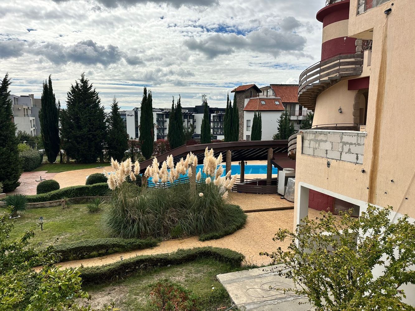 Die Anlage beeindruckt durch ihre ganzjährig gepflegte Infrastruktur und bietet Ruhe und Komfort zugleich: Außenpool mit Liegebereich, schön gestaltete Grünflächen, Tiefgarage und kontrollierter Zugang innerhalb des geschlossenen Komplexes.