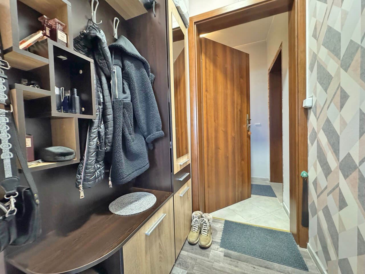 Die Lage ist äußerst praktisch, in unmittelbarer Nähe zu einem großen Supermarkt, was den Alltag deutlich erleichtert. Die Umgebung eignet sich sowohl für ganzjähriges Wohnen als auch für Kurz- und Langzeitvermietung. Die Lage in einer höheren Etage bietet mehr Privatsphäre, Ruhe und weniger Stadtlärm.