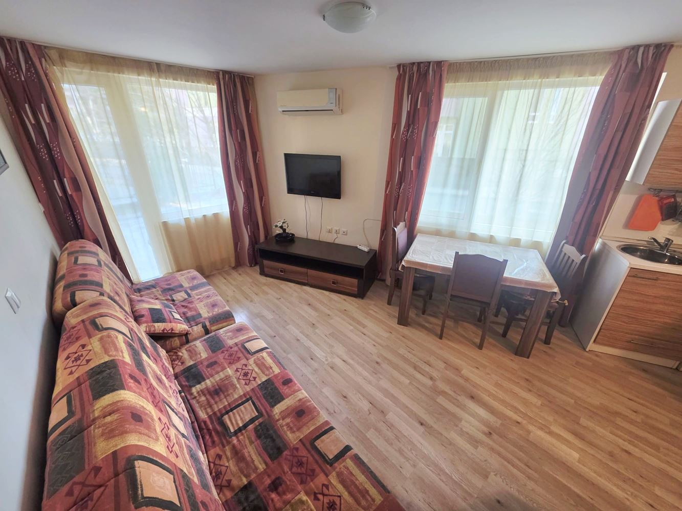 Der Komplex bietet Annehmlichkeiten für ganzjährige Nutzung, die zu einer komfortablen und ruhigen Wohnatmosphäre beitragen. Das Studio wird voll möbliert und ausgestattet verkauft und ermöglicht einen sofortigen Einzug oder eine direkte Vermietung ohne zusätzliche Kosten.