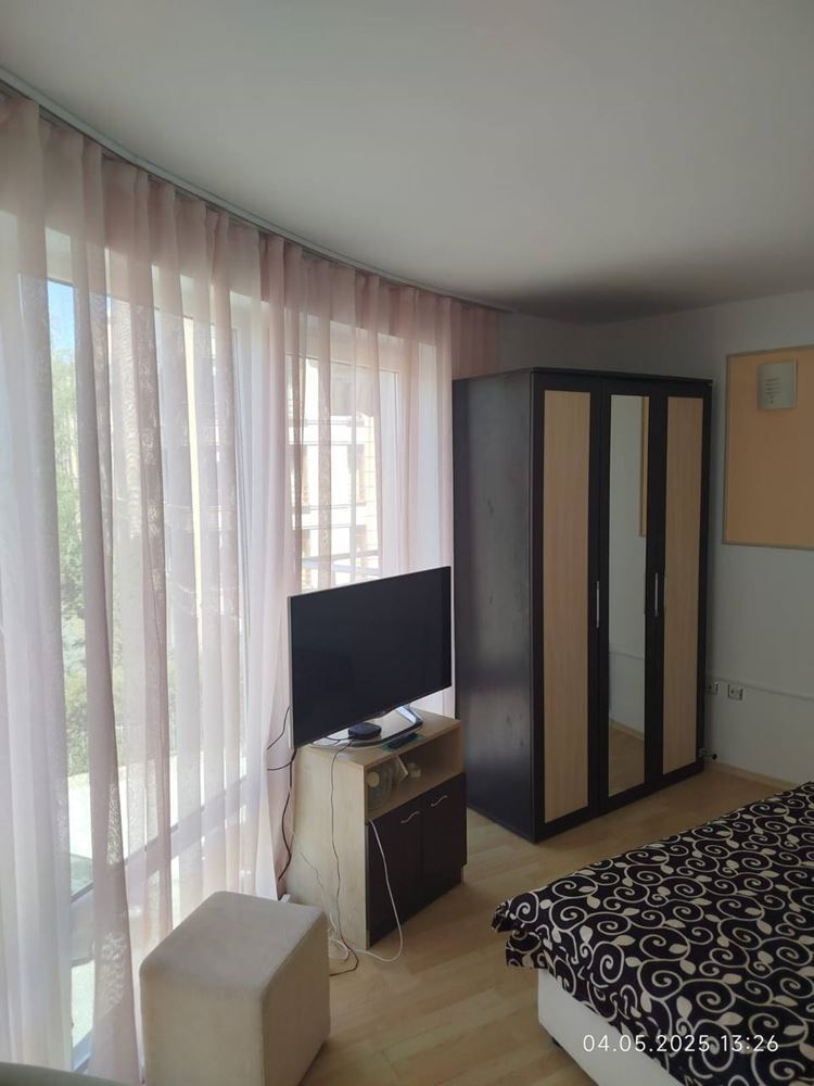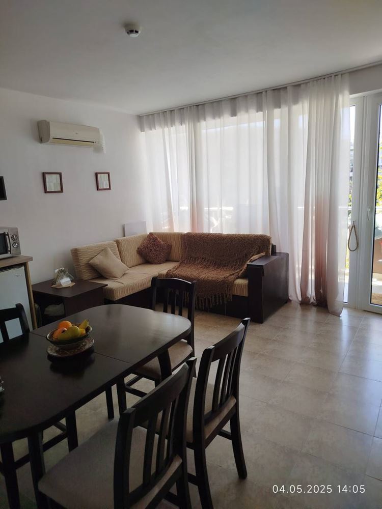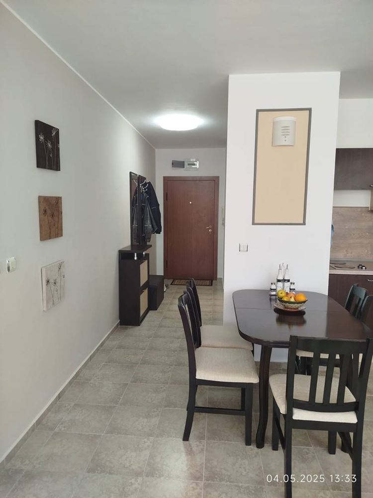 Die Wohnung besteht aus einem geräumigen Wohnzimmer mit Küchenzeile und einem gemütlichen Schlafzimmer, das Ruhe und Komfort gewährleistet. Es gibt ein vollständig ausgestattetes Badezimmer, und vom Balkon genießen Sie eine wunderschöne Aussicht auf den Komplex und die Grünflächen, was ein Gefühl von Raum und Harmonie vermittelt. Ein Aufzug sorgt für einen einfachen Zugang zu Ihrem Stockwerk und zusätzlichen Komfort.