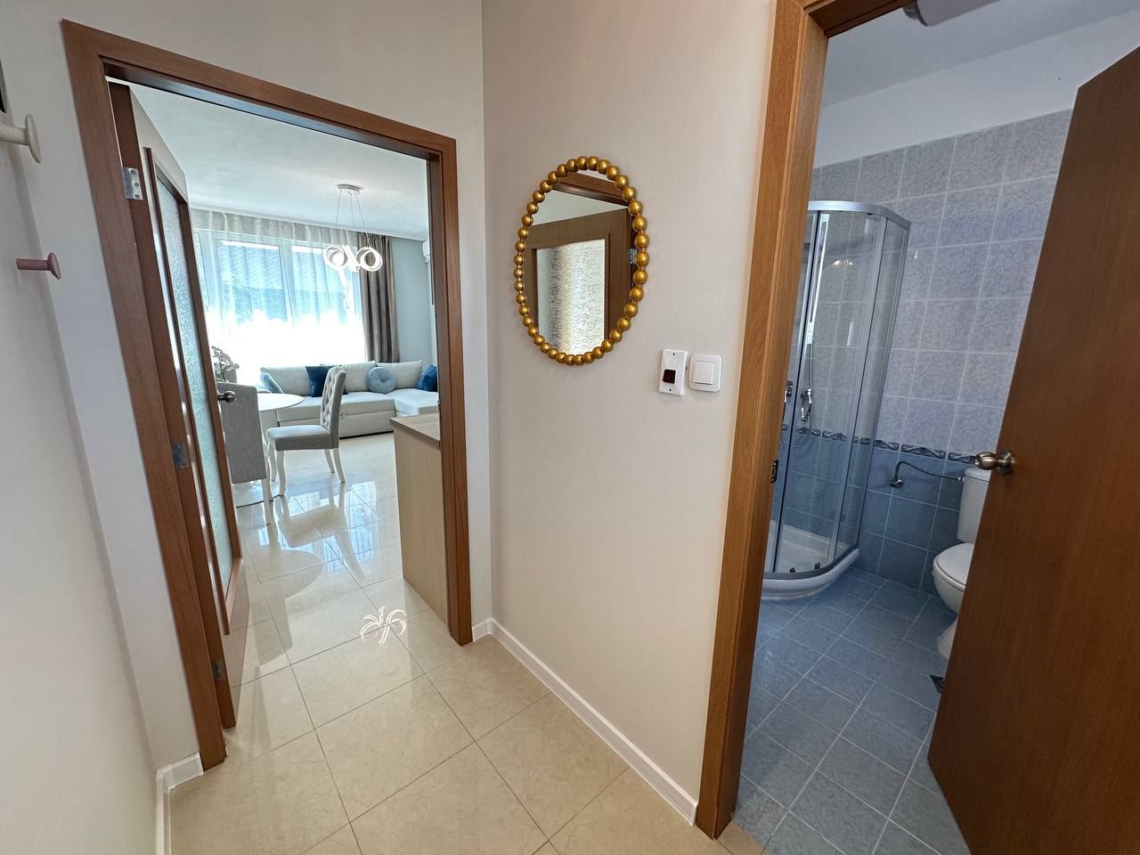 Die Wohnung beeindruckt durch hochwertige Renovierung und stilvolles Interieur, das moderne Elemente und eine gemütliche Atmosphäre verbindet. Mit einer Gesamtfläche von 60 m² bietet die Immobilie eine funktionale Aufteilung, die ein geräumiges Wohnzimmer, ein gemütliches Schlafzimmer, ein modernes Badezimmer, ein Wohnzimmer und eine Terrasse umfasst und ein Gefühl von Raum und Komfort schafft. Die Wohnung verfügt über neue Möbel, und jedes Detail ist sorgfältig ausgewählt, um maximalen Komfort und angenehme Ästhetik zu gewährleisten.