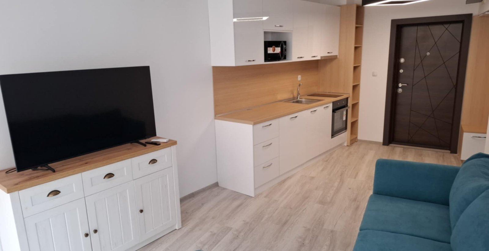 Die Wohnung ist praktisch aufgeteilt und umfasst einen Eingangsbereich, ein gemütliches Schlafzimmer, einen hellen Essbereich mit Küchenzeile, ein Badezimmer mit Toilette sowie eine Terrasse, die einen angenehmen Ort für den Morgenkaffee oder die abendliche Entspannung bietet. Die Räume sind so organisiert, dass sie sowohl für den Eigenbedarf als auch für die Vermietung mit guter Rendite geeignet sind.