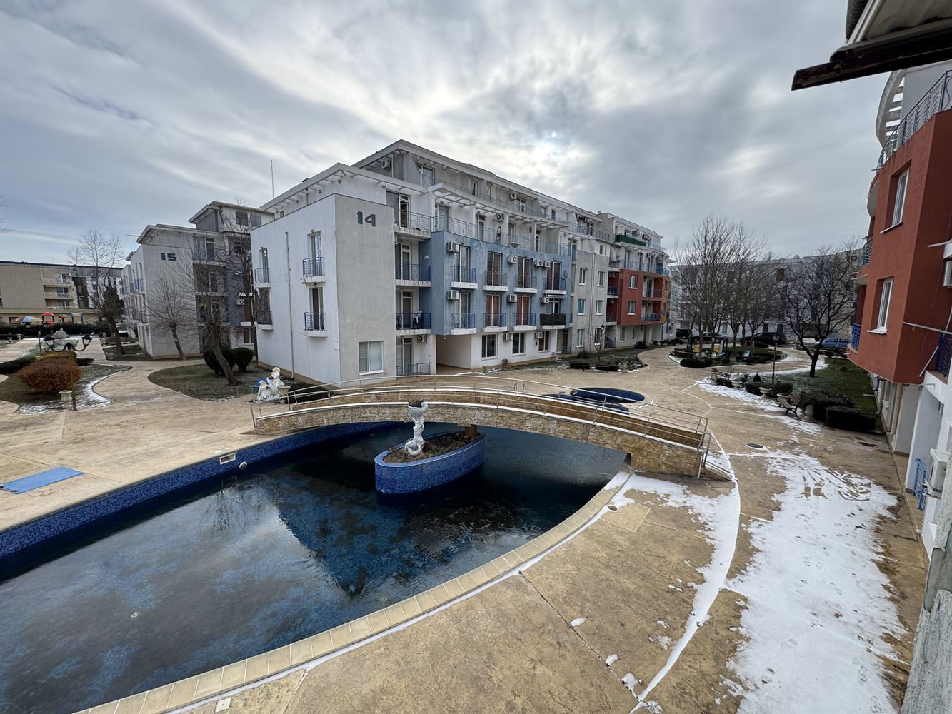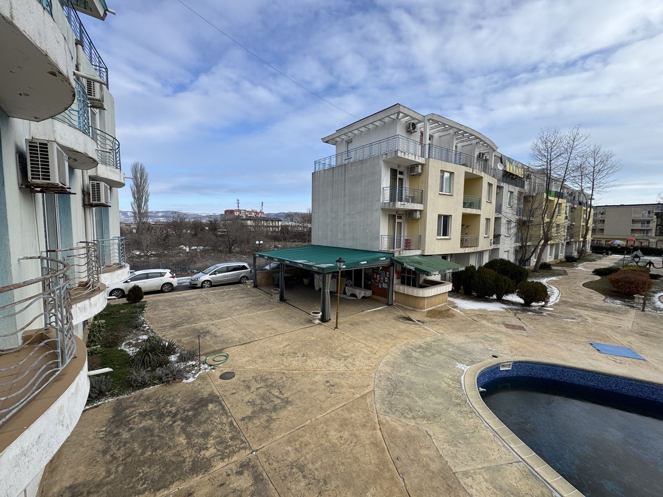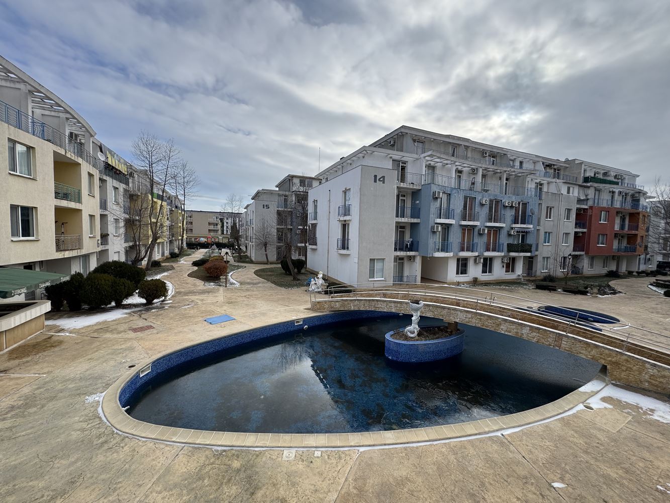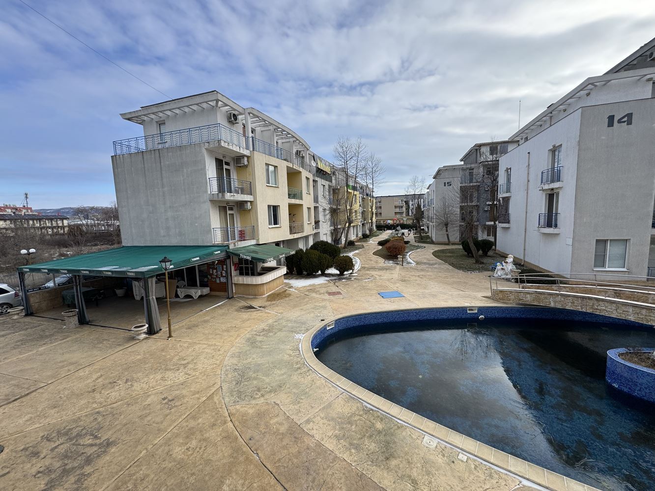 Ein besonderes Plus ist das vorhandene großzügige Parken sowie die ausgewiesenen Grün- und Rasenflächen, die ideal für ruhige Spaziergänge und Entspannung in der Natur sind. Der Komplex bietet eine ruhige und angenehme Umgebung, die die Annehmlichkeiten des Resorts mit einem Gefühl von Ruhe und Komfort kombiniert.