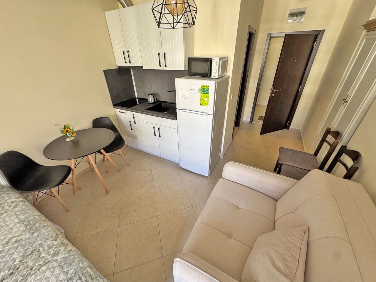 Wir bieten zum Verkauf ein gemütliches Studio, das in einem der beeindruckendsten und gut entwickelten Komplexe in Sonnenstrand liegt. Die Immobilie ist eine ausgezeichnete Wahl sowohl für ein Ferienhaus am Meer als auch als Investition mit Vermietungspotenzial, dank der Beliebtheit und der umfangreichen Annehmlichkeiten des Komplexes. Die Wohnung befindet sich im vierten Stock und hat eine Gesamtfläche von 36 m². Der Raum ist funktional organisiert und bietet einen hellen Hauptraum, in dem eine Wohn- und Schlafzone bequem eingerichtet werden kann, sowie Platz für eine Kochnische. Das Apartment eignet sich sowohl für den Eigenbedarf als auch für den Sommerurlaub.