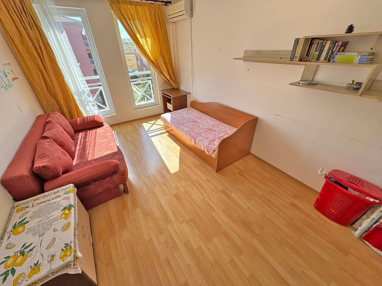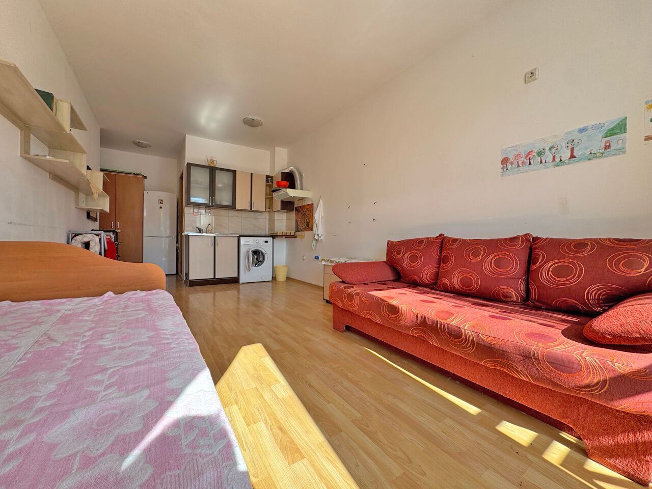 Wir präsentieren Ihnen ein helles und gemütliches Studio, das sich im vierten und obersten Stock eines hervorragend gepflegten Wohnkomplexes in der Gegend von Sonnenstrand befindet. Die Immobilie ist eine ideale Wahl für alle, die Komfort und Ruhe in einem der beliebtesten Badeorte Bulgariens suchen, ohne auf Bequemlichkeit und Infrastruktur zu verzichten. Das Studio hat eine Gesamtfläche von 34 m² und bietet eine funktionale Aufteilung mit 1 Raum und 1 Badezimmer. Die oberste Etage sorgt für mehr Ruhe und Privatsphäre sowie für angenehmes Tageslicht während des ganzen Tages. Der Raum ermöglicht eine natürliche Aufteilung in Schlafbereich, Entspannungszone und kompakte Küchenzeile – ganz nach den Bedürfnissen des neuen Eigentümers. Geeignet sowohl für den dauerhaften Aufenthalt als auch für die Feriennutzung.