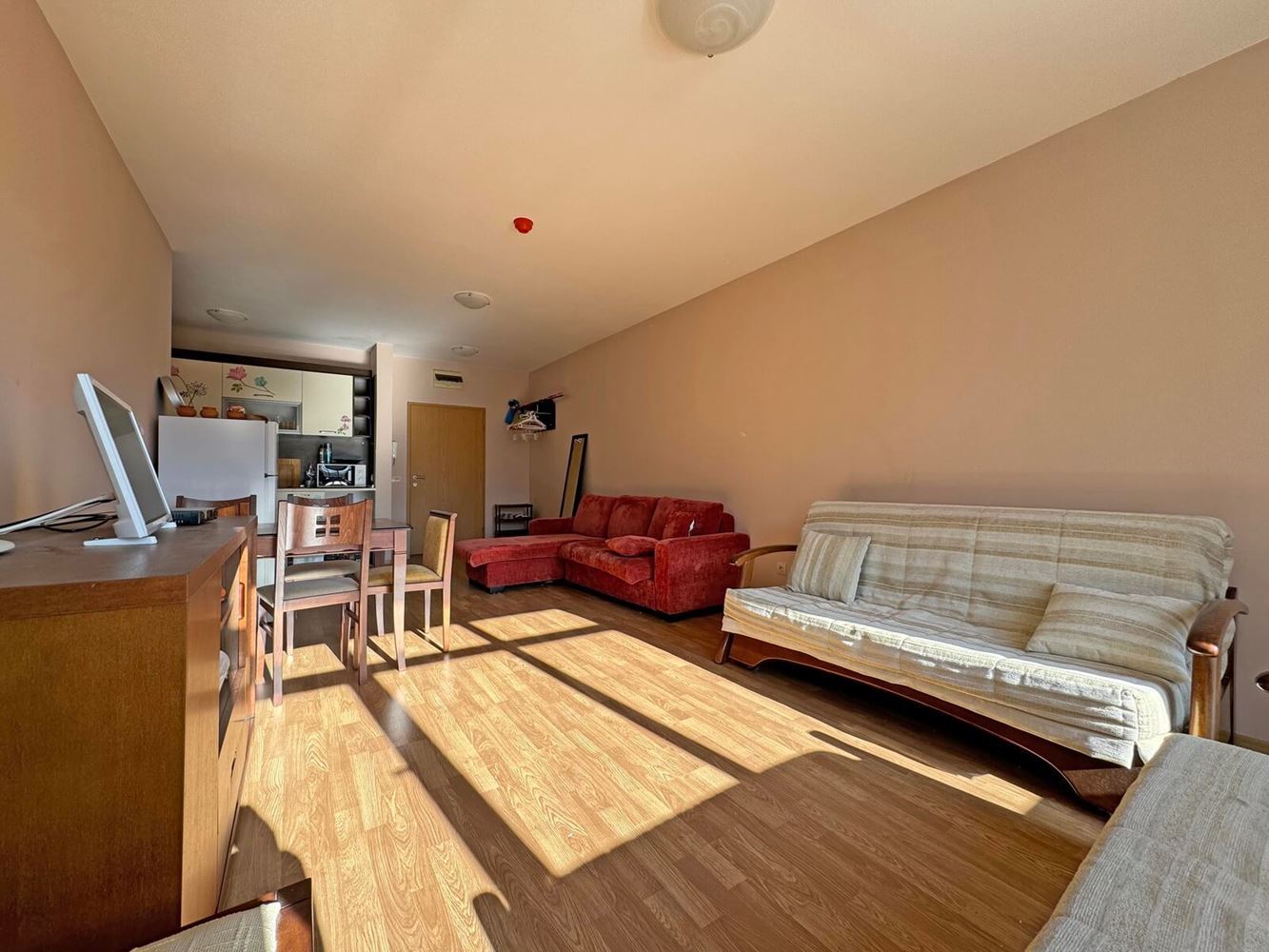 Die Wohnung befindet sich im 3. OG. Die Gesamtfläche der Wohnung beträgt 74 m² und diese besteht aus einem geräumigen Wohnzimmer mit Kochnische, einem Schlafzimmer, Bad mit WC und einem Balkon mit Blick auf den Pool und das Komplexinnere. Die Wohnung wird komplett möbliert und ausgestattet verkauft.