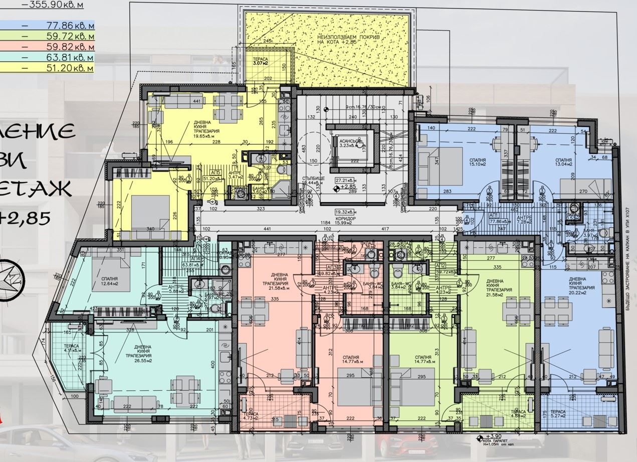 Wir präsentieren Ihnen eine 3-Zimmer-Wohnung mit einer Fläche von 94,28 m², gelegen im zweiten Stock eines im Bau befindlichen Gebäudes in einer ruhigen und günstigen Lage des Wohnviertels Zornitsa, hinter dem Geschäft Anet. Die Immobilie bietet eine funktionale Raumaufteilung und die Möglichkeit für komfortables und modernes Wohnen, und ist gleichzeitig eine ausgezeichnete Investition für die Zukunft.