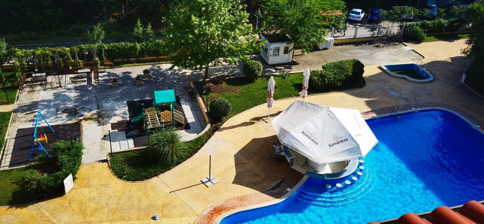 - Außen-Schwimmbad mit Sonnenliegen und Entspannungsbereich;