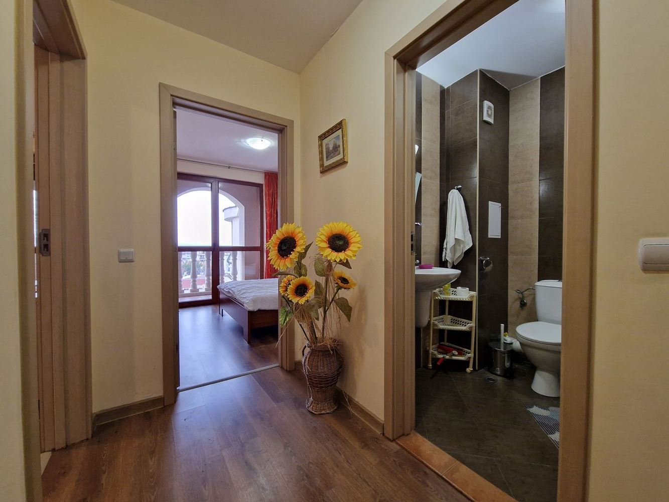 Wir bieten zum Verkauf eine helle und funktionale Ein-Schlafzimmer-Wohnung, gelegen im sechsten Stock eines modernen Komplexes, nur 300 Meter vom Meer in Sunny Beach entfernt. Die Wohnung hat eine Gesamtfläche von 60,70 м² und bietet eine ausgezeichnete Raumaufteilung, moderne Annehmlichkeiten und die Möglichkeit für komfortables Wohnen oder eine rentable Investition zur Vermietung.
