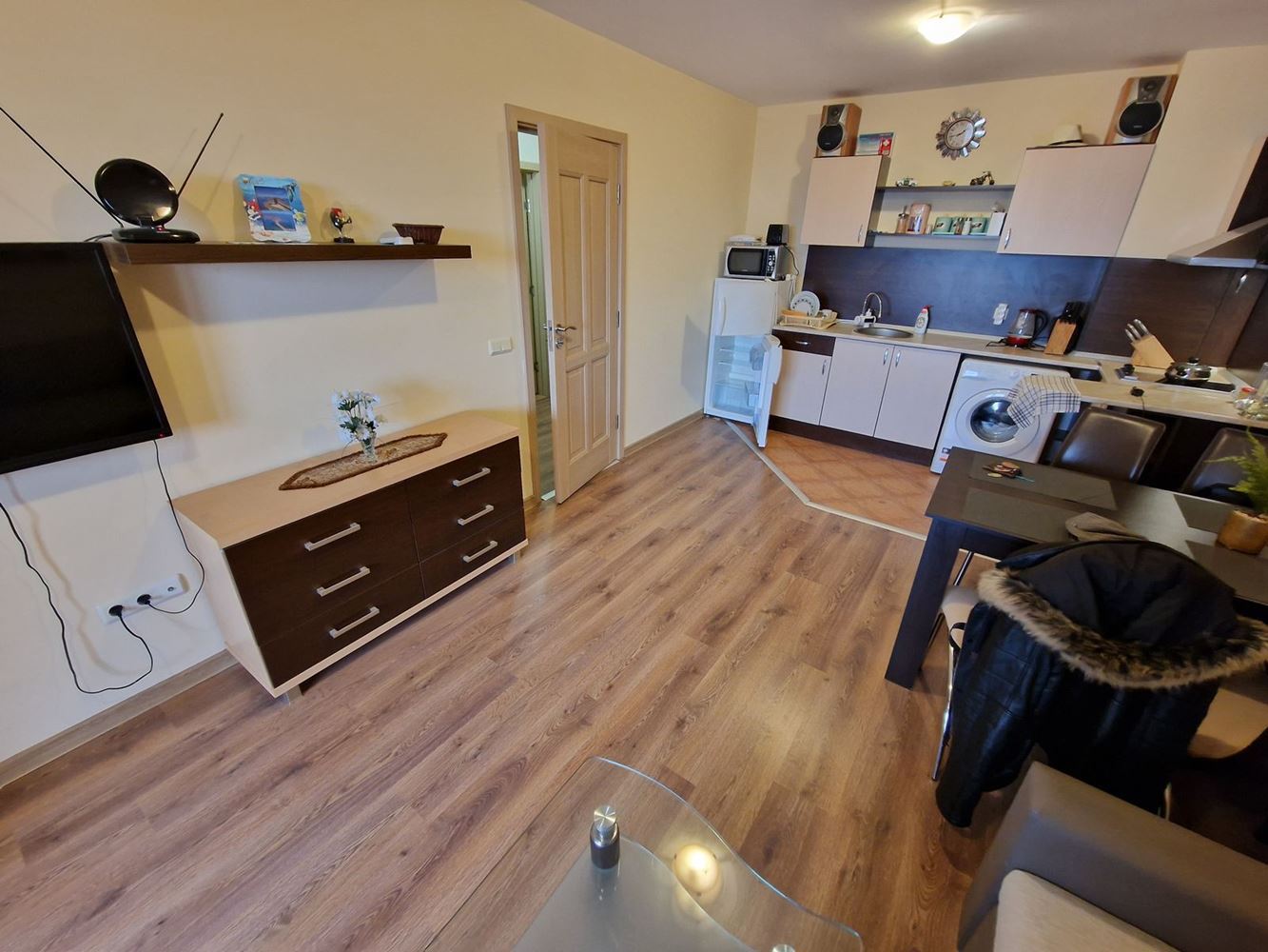 Diese Ein-Schlafzimmer-Wohnung ist eine ausgezeichnete Wahl für alle, die eine Kombination aus Komfort, modernen Annehmlichkeiten und Nähe zum Meer suchen, sowie für Investoren, die eine profitablen Ferienimmobilie in einem der beliebtesten Resorts an der bulgarischen Schwarzmeerküste suchen.