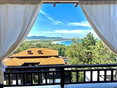 Wir bieten zum Verkauf eine geräumige Wohnung mit einem Schlafzimmer auf zwei Ebenen, gelegen in einer der bevorzugtesten Ferienanlagen der Stadt Sozopol. Die Immobilie hat eine Gesamtfläche von 83 m², befindet sich im dritten und letzten Stock und beeindruckt mit einem einzigartigen Blick auf Meer, Wald und Berge, der ein Gefühl von Weite, Ruhe und vollständiger Harmonie mit der Natur vermittelt.