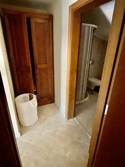Auf der zweiten Ebene befinden sich ein gemütliches Schlafzimmer, ein Badezimmer mit WC sowie ein praktischer Vorraum vor Bad und Schlafzimmer, in dem ein Kleiderschrank in einer Nische integriert ist, was eine intelligente Stauraumlösung darstellt.