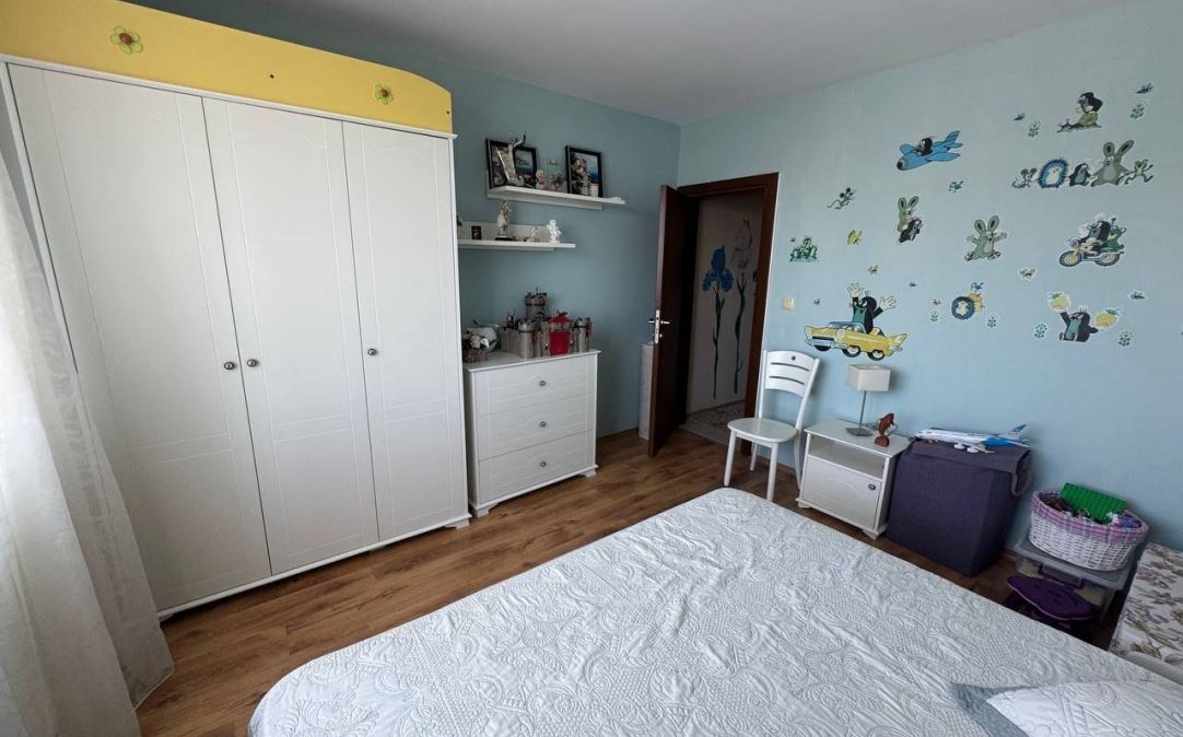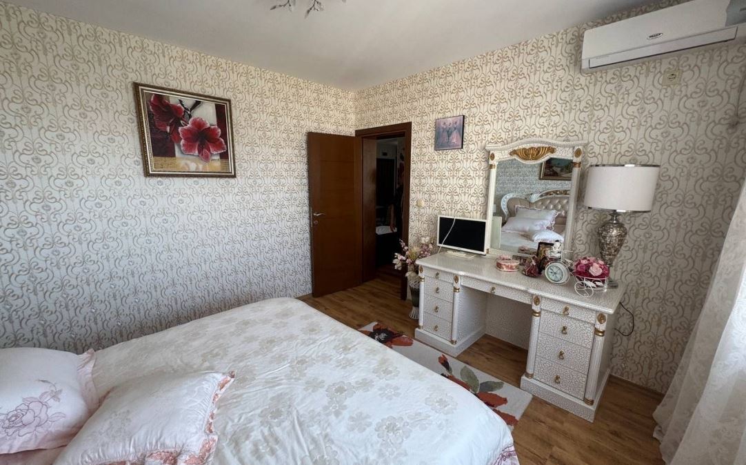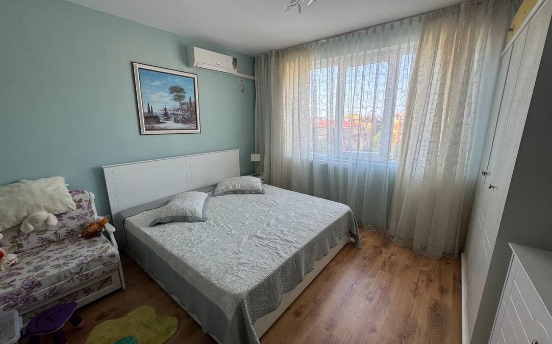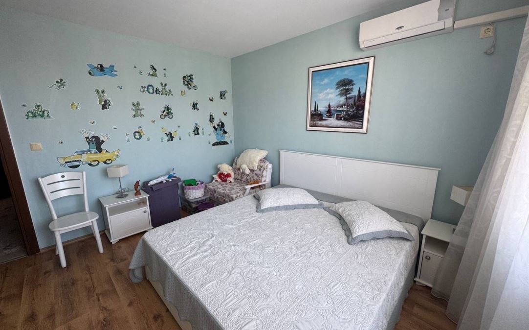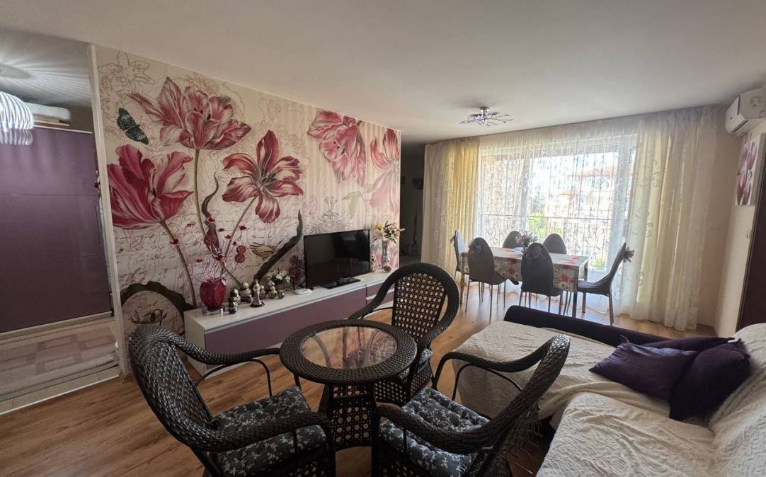 Wir präsentieren Ihnen eine helle und geräumige Wohnung mit zwei Schlafzimmern mit einer Fläche von 100 m², gelegen im ruhigen und beliebten Badeort Ravda. Die Immobilie befindet sich im fünften Stock eines sechsstöckigen Gebäudes mit Act 16, was Sicherheit und einen vollständig geregelten Status garantiert.