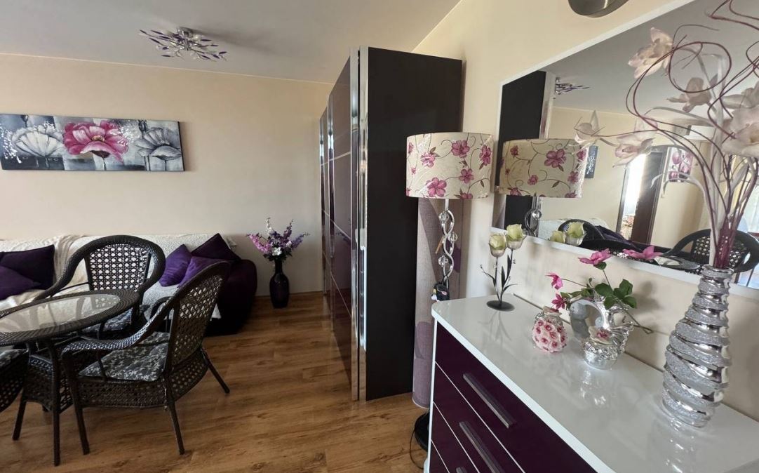 Die Wohnung beeindruckt mit einer funktionalen Aufteilung und Komfort – ein Eingangsbereich, ein geräumiges und helles Wohnzimmer mit Entspannungsbereich und Küche, zwei große Schlafzimmer, ein Badezimmer mit Duschkabine und eine Terrasse, ideal zur Entspannung. Die Immobilie ist mit allen notwendigen Elektrogeräten ausgestattet, was einen sofortigen Einzug oder Vermietung ermöglicht.