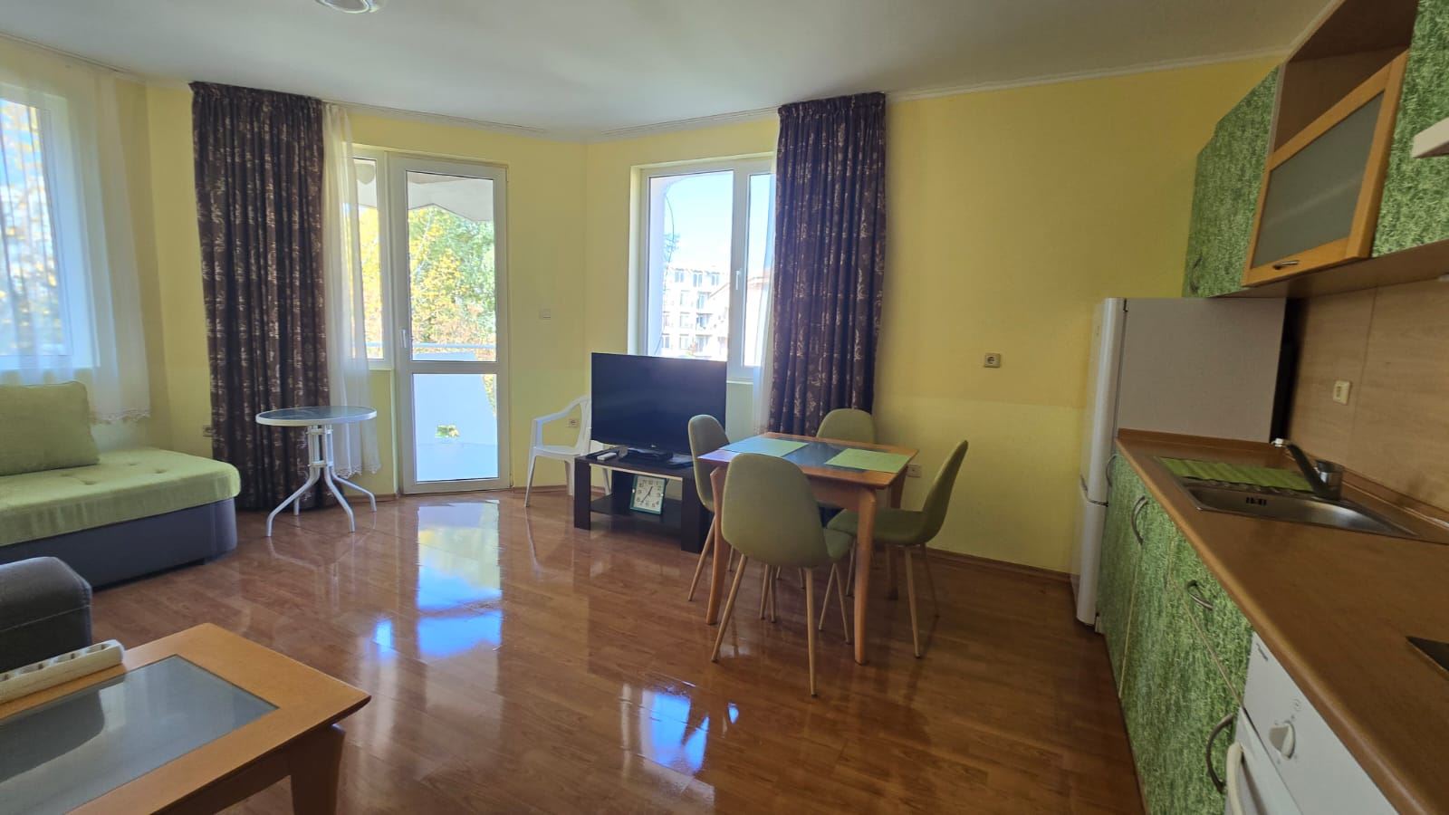 Diese Immobilie stellt eine ausgezeichnete Gelegenheit zum Kauf einer Zwei-Schlafzimmer-Wohnung in Sunny Beach dar, die praktische Raumaufteilung, funktionale Räume, Zugang zum Pool und niedrige Wartungskosten kombiniert und sowohl für Familien als auch für Investitionen mit Mietpotenzial geeignet ist.