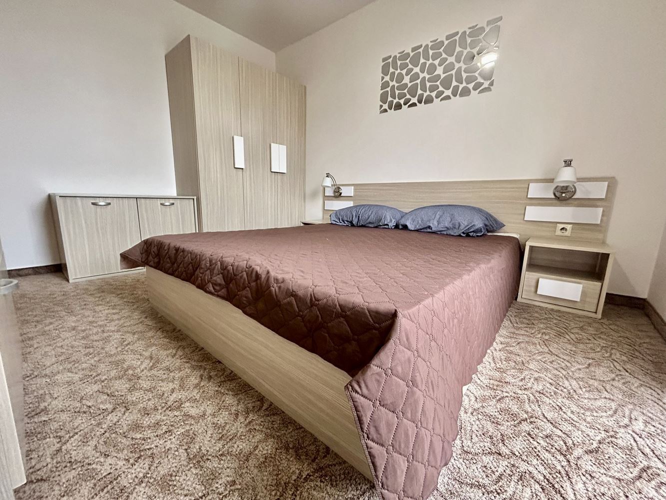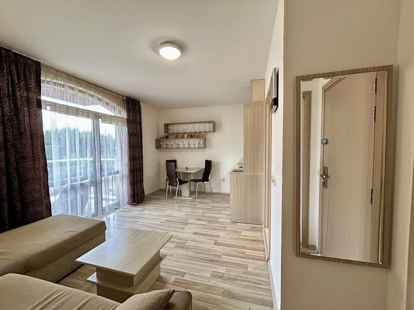 Wir präsentieren Ihnen eine Zwei-Zimmer-Wohnung mit einer Fläche von 43,12 m², gelegen in einem geschlossenen Komplex in einer grünen und ruhigen Gegend von Sonnenstrand. Die Immobilie befindet sich im zweiten Stock und bietet Ruhe und Gemütlichkeit, während sie gleichzeitig in der Nähe aller Annehmlichkeiten des Resorts liegt – Restaurants, Geschäfte, Unterhaltung und Freizeitmöglichkeiten. Die Wohnung ist voll möbliert und bereit für ganzjähriges Wohnen.