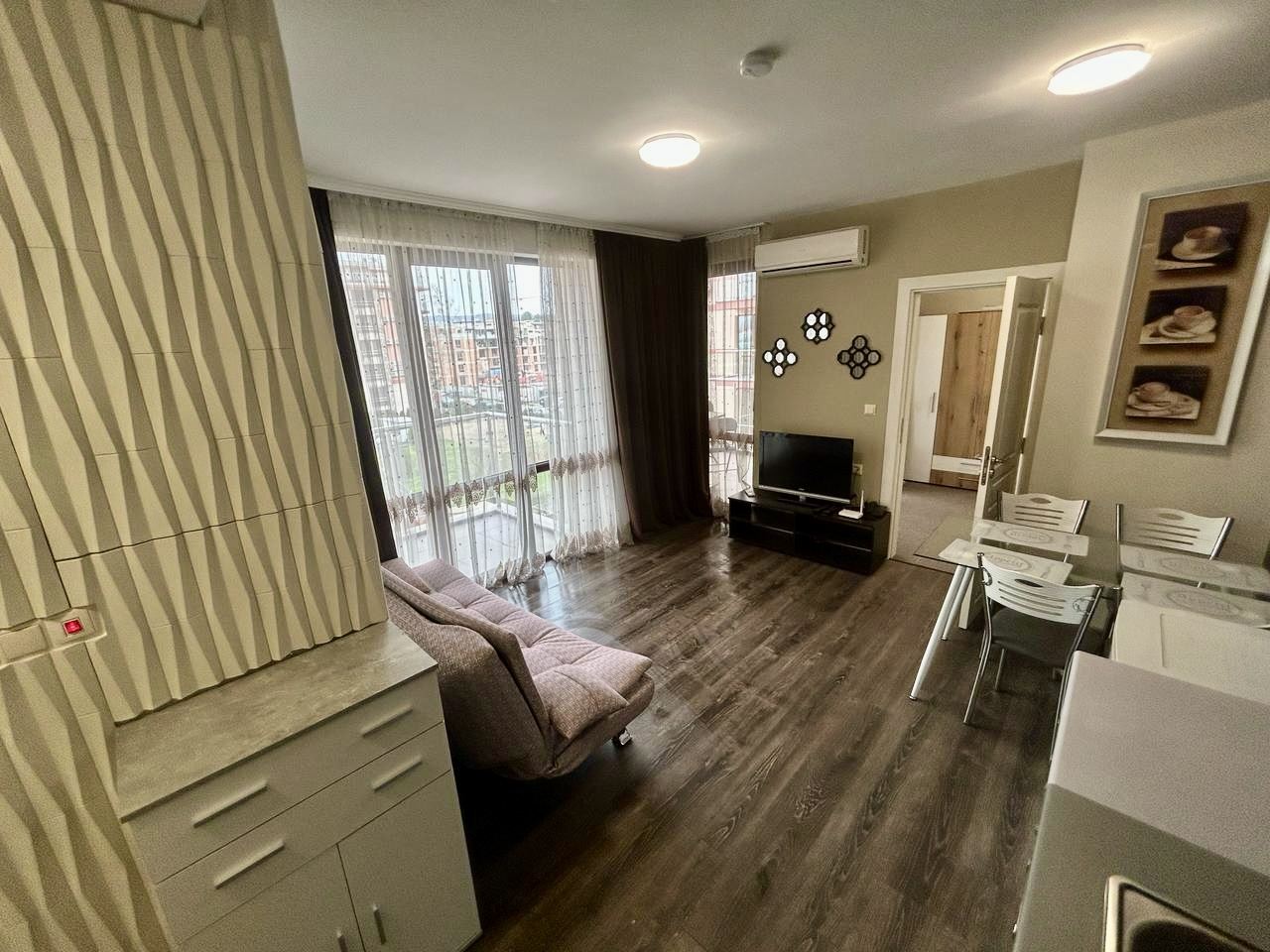 Wir bieten Ihnen eine Zwei-Zimmer-Wohnung im Ferienort Sonnenstrand, gelegen im fünften Stock einer geschlossenen und hervorragend gepflegten Wohnanlage. Mit einer Fläche von 58 m² überzeugt die Immobilie durch eine funktionale Raumaufteilung und ein großzügiges Wohngefühl. Sie besteht aus einem geräumigen Wohnzimmer, einem komfortablen Schlafzimmer, einem modernen Badezimmer sowie zwei Terrassen, wobei jede Wohnungseinheit direkten Zugang zu einer Terrasse hat – ein großer Vorteil, der viel Tageslicht und eine angenehme Verbindung zum Außenbereich bietet.