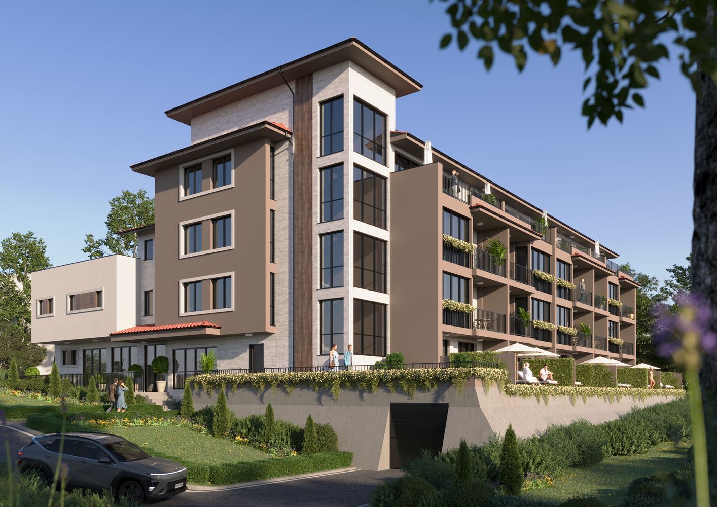 Der Komplex befindet sich im Stadium Act 14, mit geplanter Fertigstellung im Sommer 2026, und bietet alle modernen Annehmlichkeiten – eingezäuntes Gelände, Swimmingpool und Grillbereich, die eine angenehme und sichere Umgebung schaffen.