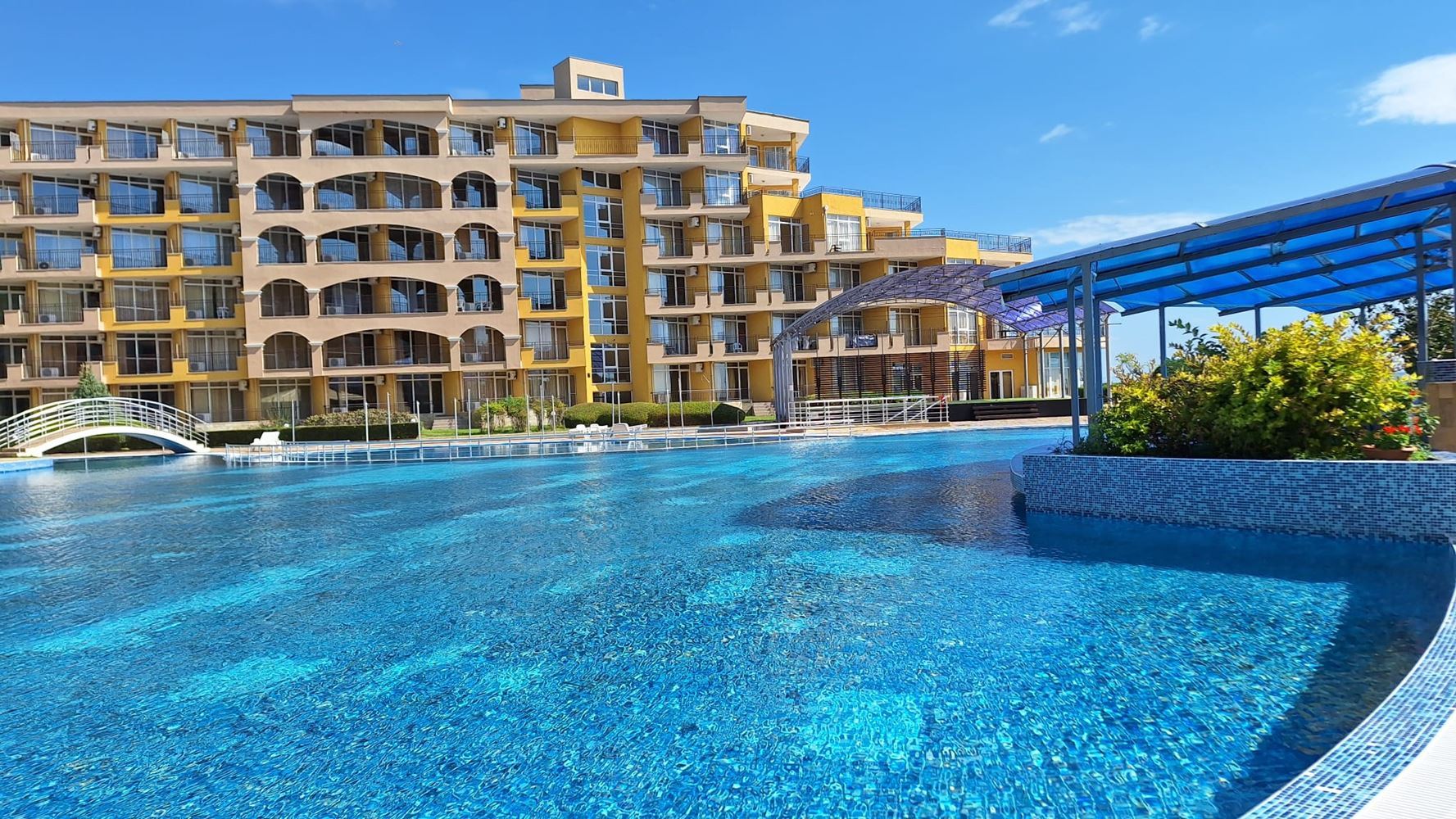 Für Eigentümer und Gäste stehen Gehwege, Parkplätze, zwei Außenpools mit Kinderbereichen und Wasserrutschen, sowie eine Vielzahl von Annehmlichkeiten zur Verfügung, die einen vollwertigen Ferienlebensstil gewährleisten.