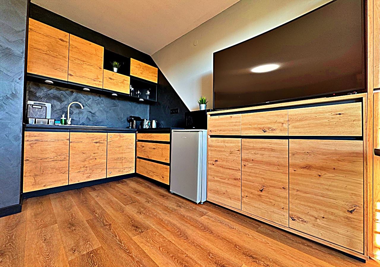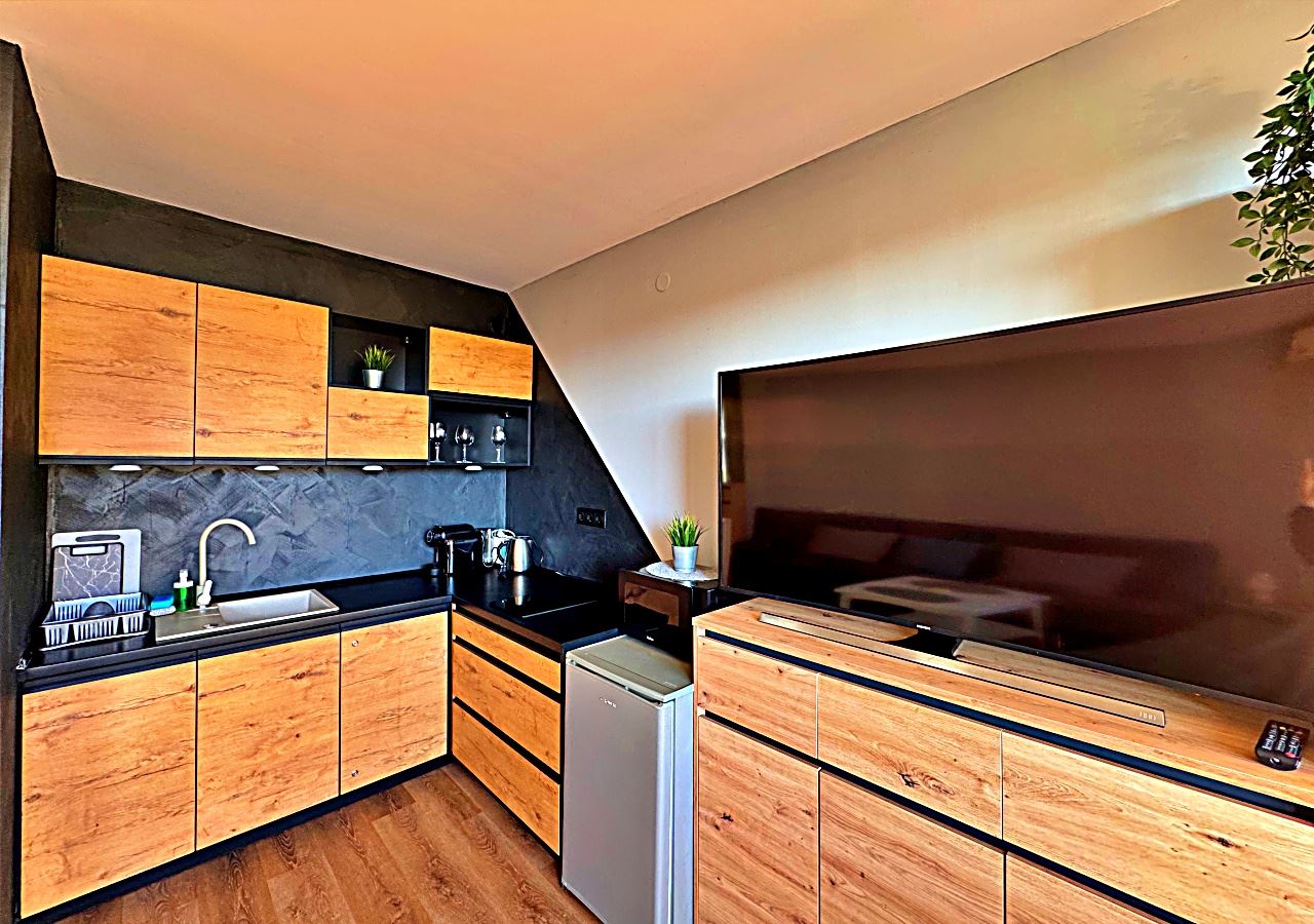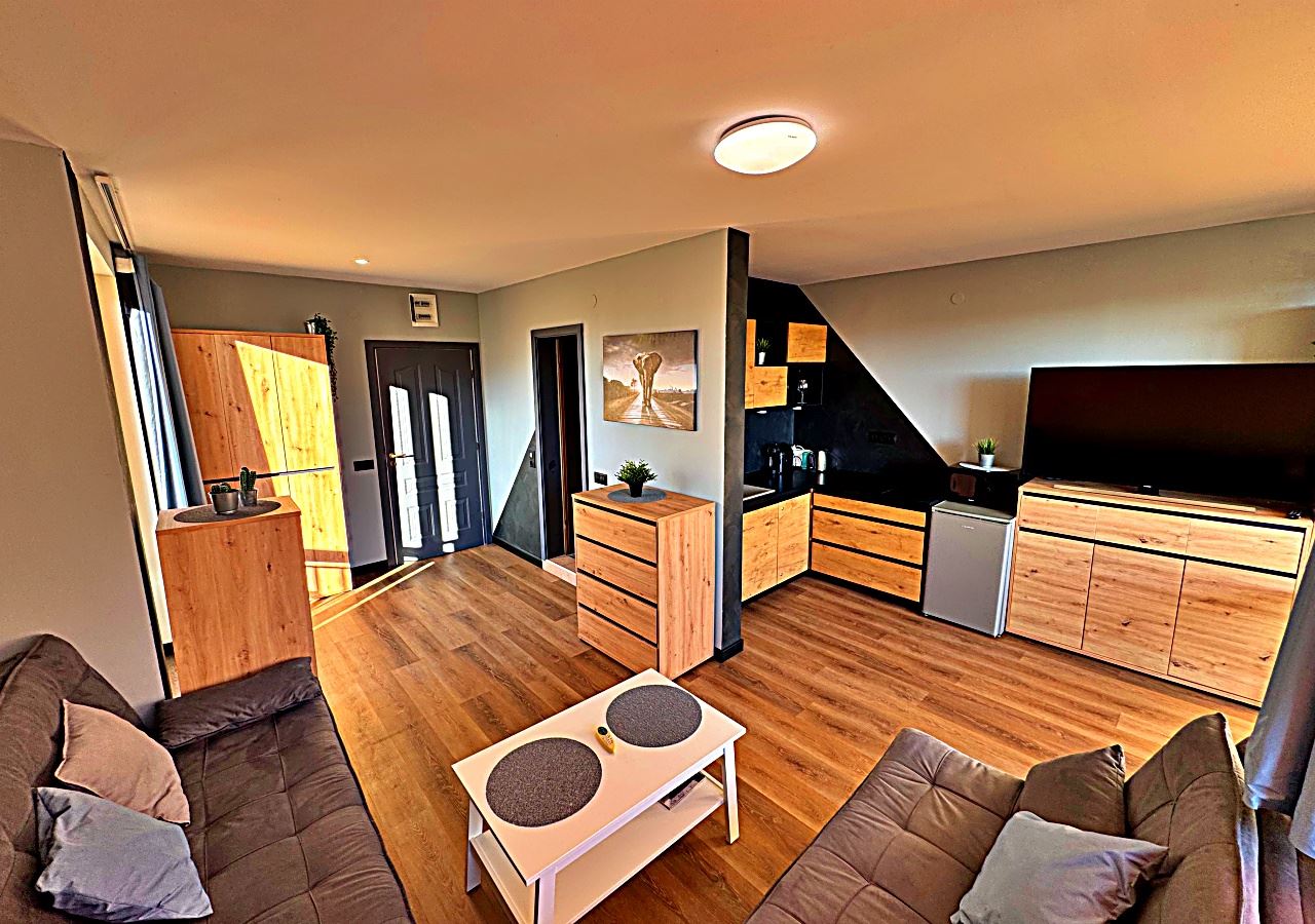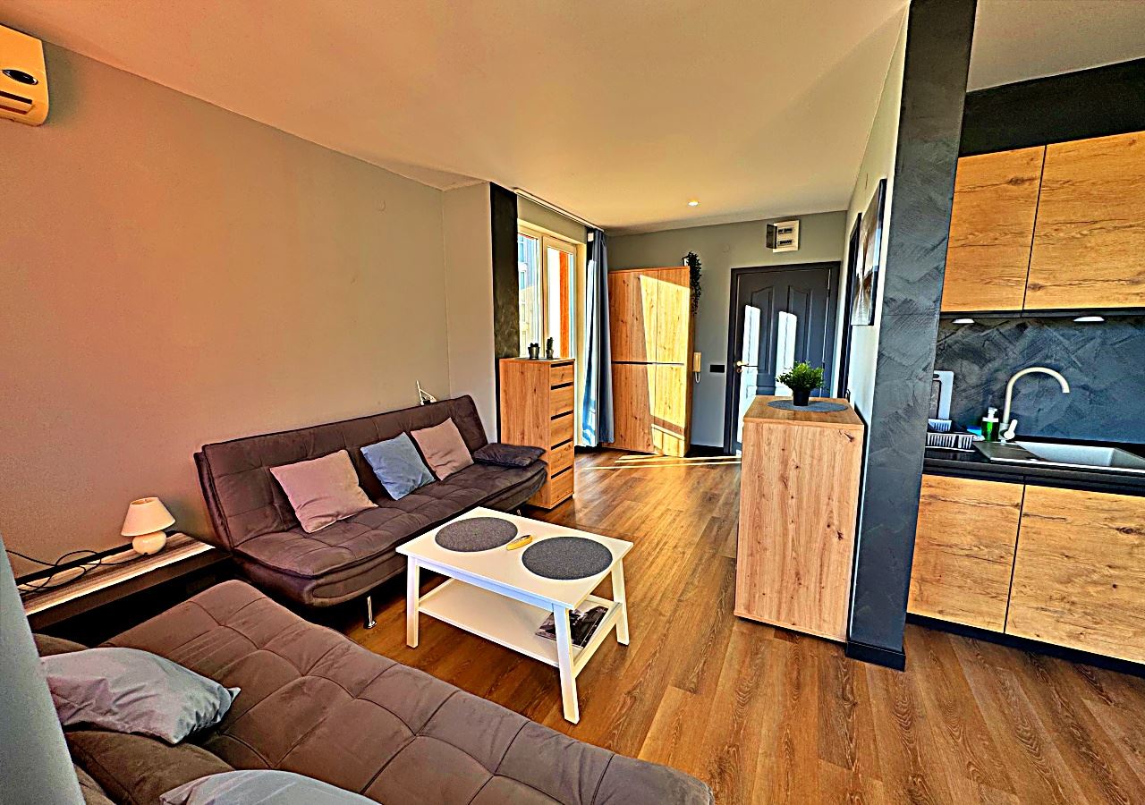 Das Studio ist geräumig, hell und funktional gestaltet und verfügt über einen komfortablen Wohnbereich, eine separate Küchenzeile sowie einen Essbereich. Die Einrichtung wurde mit Fokus auf Komfort und Zweckmäßigkeit ausgewählt und schafft eine angenehme Wohnatmosphäre für das ganze Jahr.