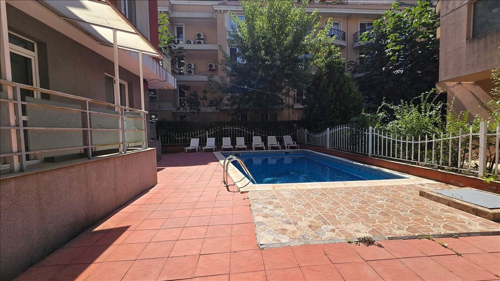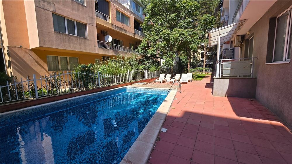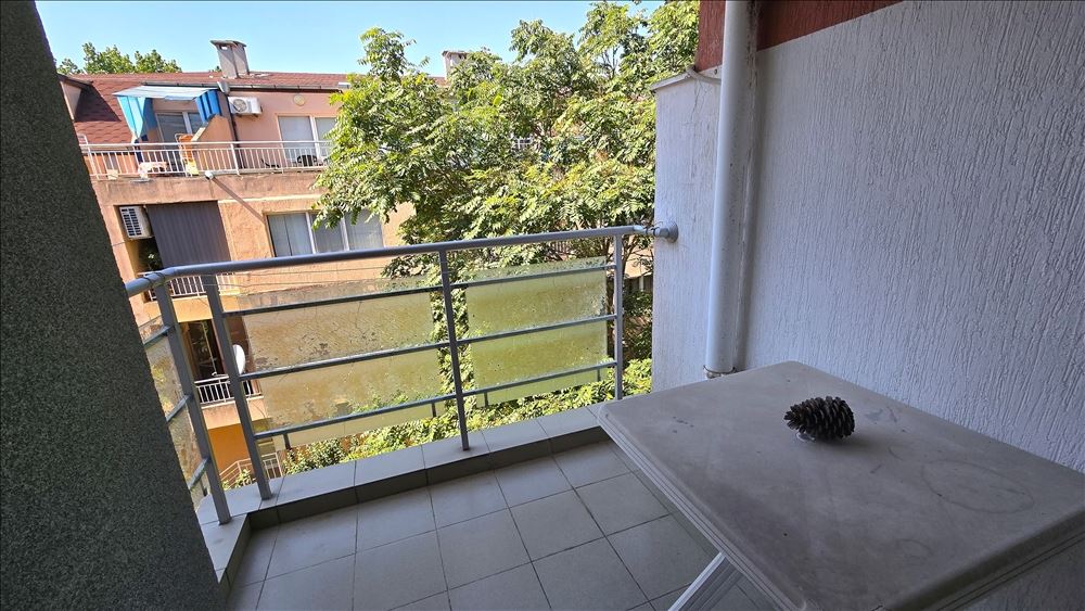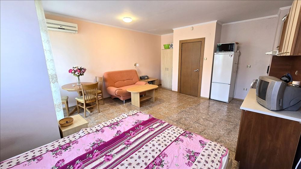 Wir präsentieren Ihnen ein funktionales und großzügiges Studio mit einer Gesamtfläche von 42 m², gelegen in einer der beliebtesten Gegenden von Sonnenstrand. Die Immobilie befindet sich nur 400 Meter vom Strand und 10 Gehminuten vom Zentrum des Resorts entfernt – die perfekte Balance zwischen Ruhe und Bequemlichkeit. Das Studio bietet einen hellen, offenen Wohnraum, der leicht in Bereiche zum Schlafen, Wohnen und Kochen unterteilt werden kann, sowie einen komfortablen Balkon – ideal für den Morgenkaffee oder entspannte Abende. Das Badezimmer ist separat und praktisch gestaltet. Dank des quadratischen Grundrisses lässt sich der Raum problemlos individuell einrichten.