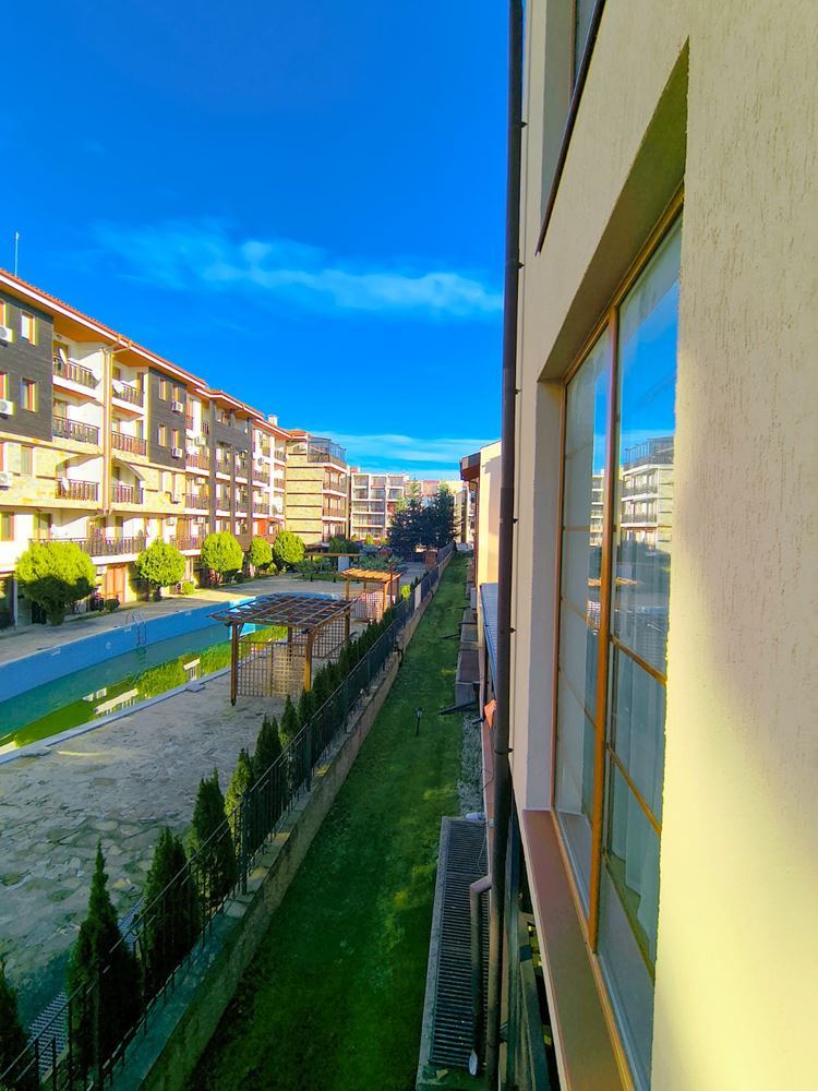Die Umgebung ist ruhig und entspannend – perfekt für Erholung. Der Komplex überzeugt mit hervorragender Pflege und umfassender Infrastruktur: Außenpool mit Kinderbereichen, Rezeption, Spielplatz, 24-Stunden-Sicherheit sowie Außen- und Tiefgarage. Die Gemeinschaftsbereiche sind geräumig und gepflegt, und die Begrünung schafft eine gemütliche Urlaubsatmosphäre.